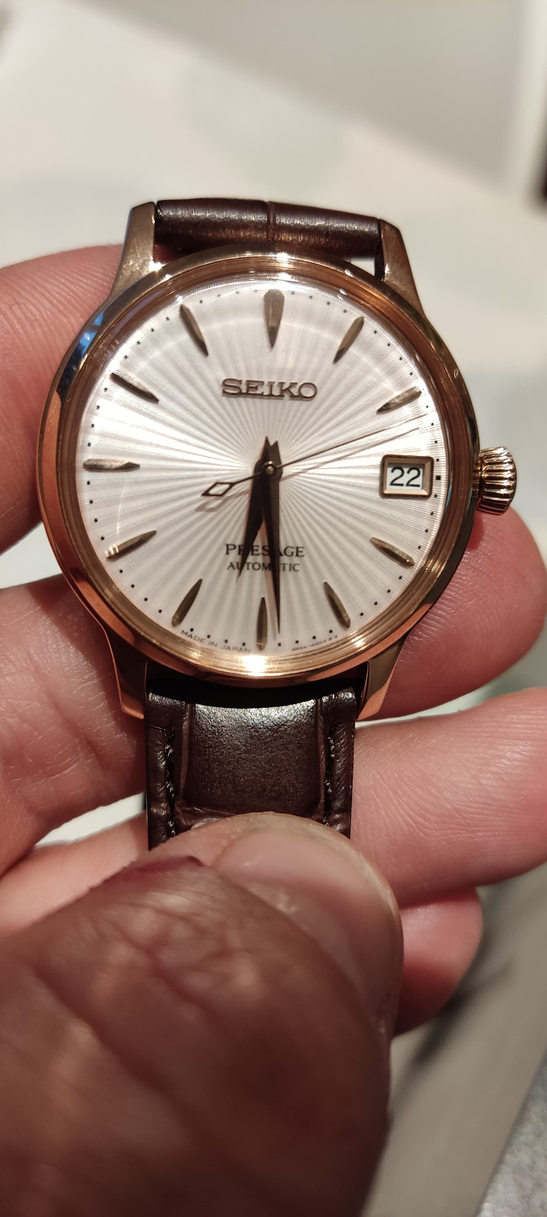 Ik heb mijn echtgenote zo ver gekregen om haar eerste automatische horloge aan te schaffen. De keuze is een Seiko Presage Bellini ( SRP852J1) geworden.