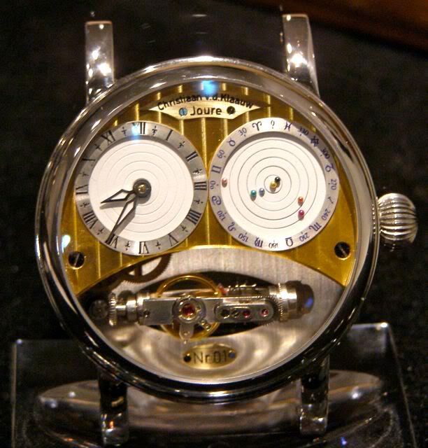 Christiaan van der Klaauw presenteerde een grote verrassing. In het diepste geheim is het team uit het atelier bezig geweest met het ontwerpen en de bouw van een complicatie waarvan ik altijd dacht dat Christiaan nooit zou uitbrengen, een Tourbillon. Het bijzondere is dat het een Tourbillon in staafvorm betreft. Als je dan ook nog deze complicatie in een kast zet waarin het Planetarium is verwerkt, dan kun je wederom spreken van een meesterstukje, Made in Holland.
