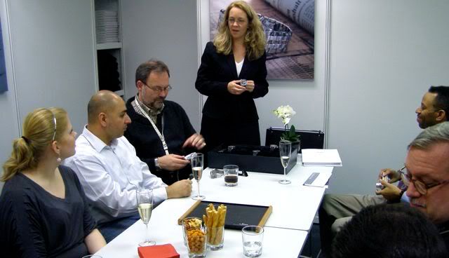 Ieder jaar schrijven we ons ook in voor een meeting in de Sinn stand. De persdame was weer degelijk, de hapjes lekker, en de champagne echt.