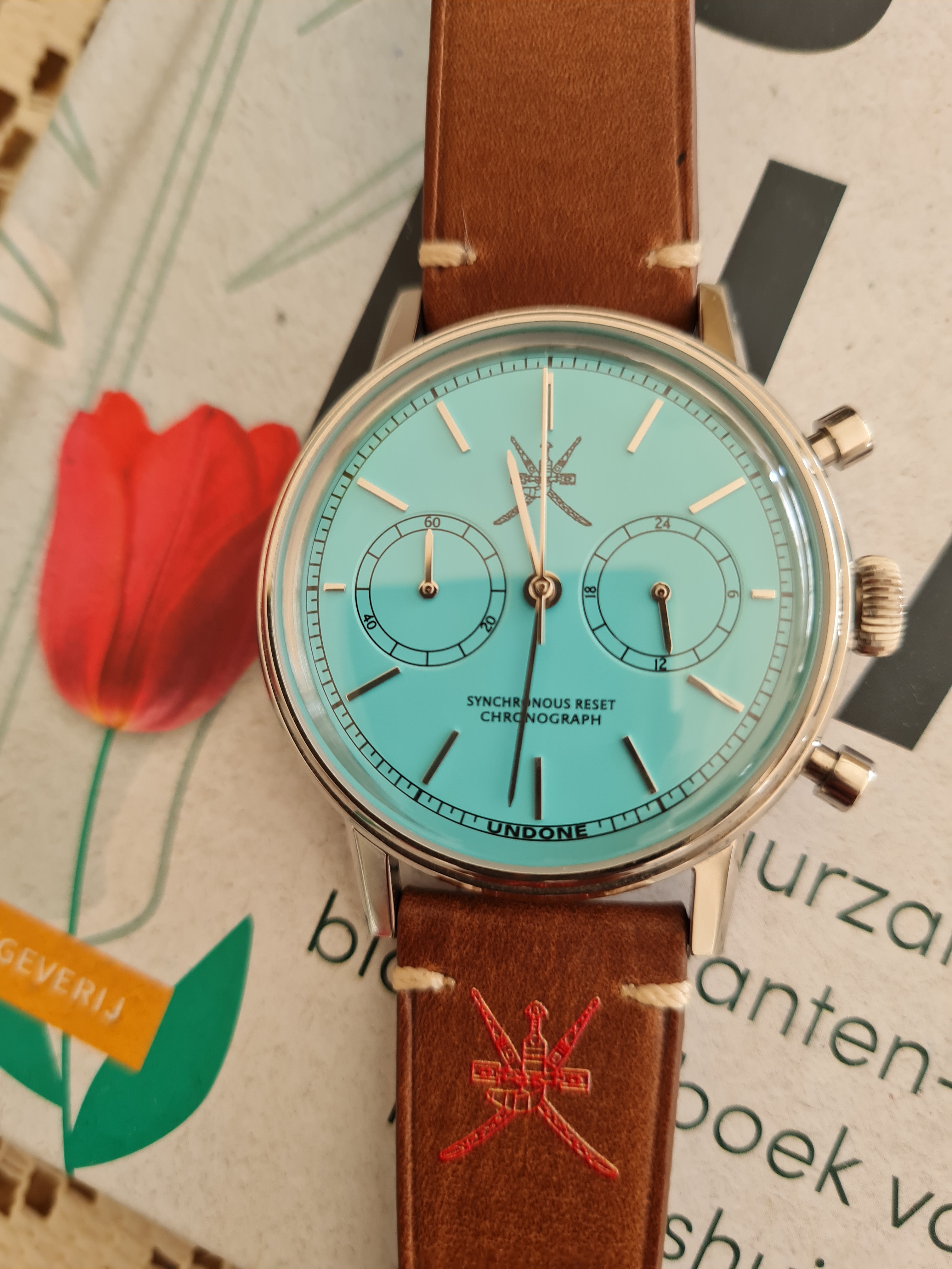 Nog voor mijn zomervakantie een mooie mecha-quartz Tiff-bleu Undone gekocht op het forum. Nu is de batterij leeg.