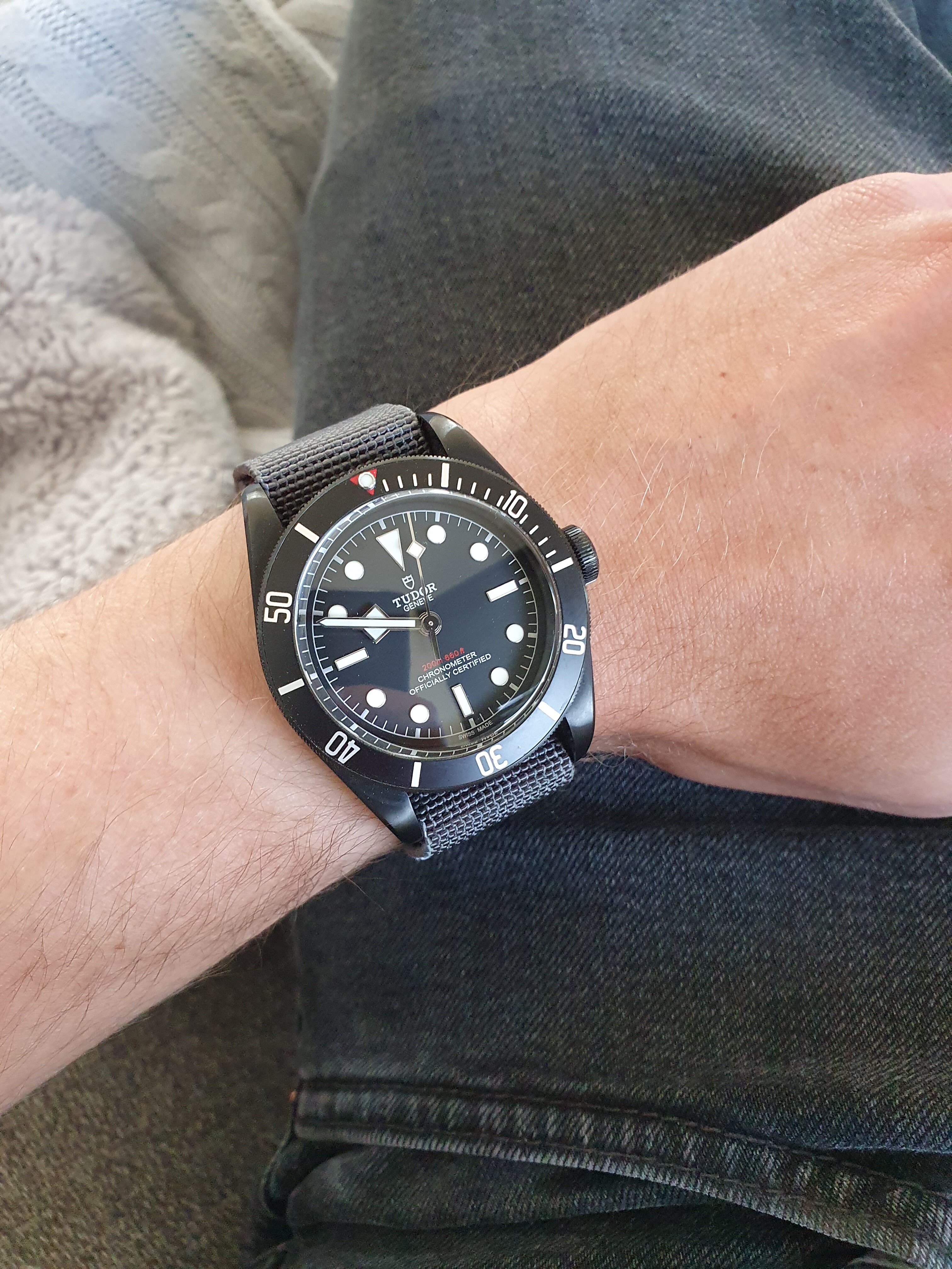 Ik heb mijn Black Bay Dark nu een paar jaar en ik heb hem op de stalen band gekocht. Na ongeveer een jaar op de stalen band vond ik het tijd voor wat nieuws en heb ik een crafter blue rubberen band gekocht voor de zomer en nadien is de originele Tudor Nato er ook bij gekomen.