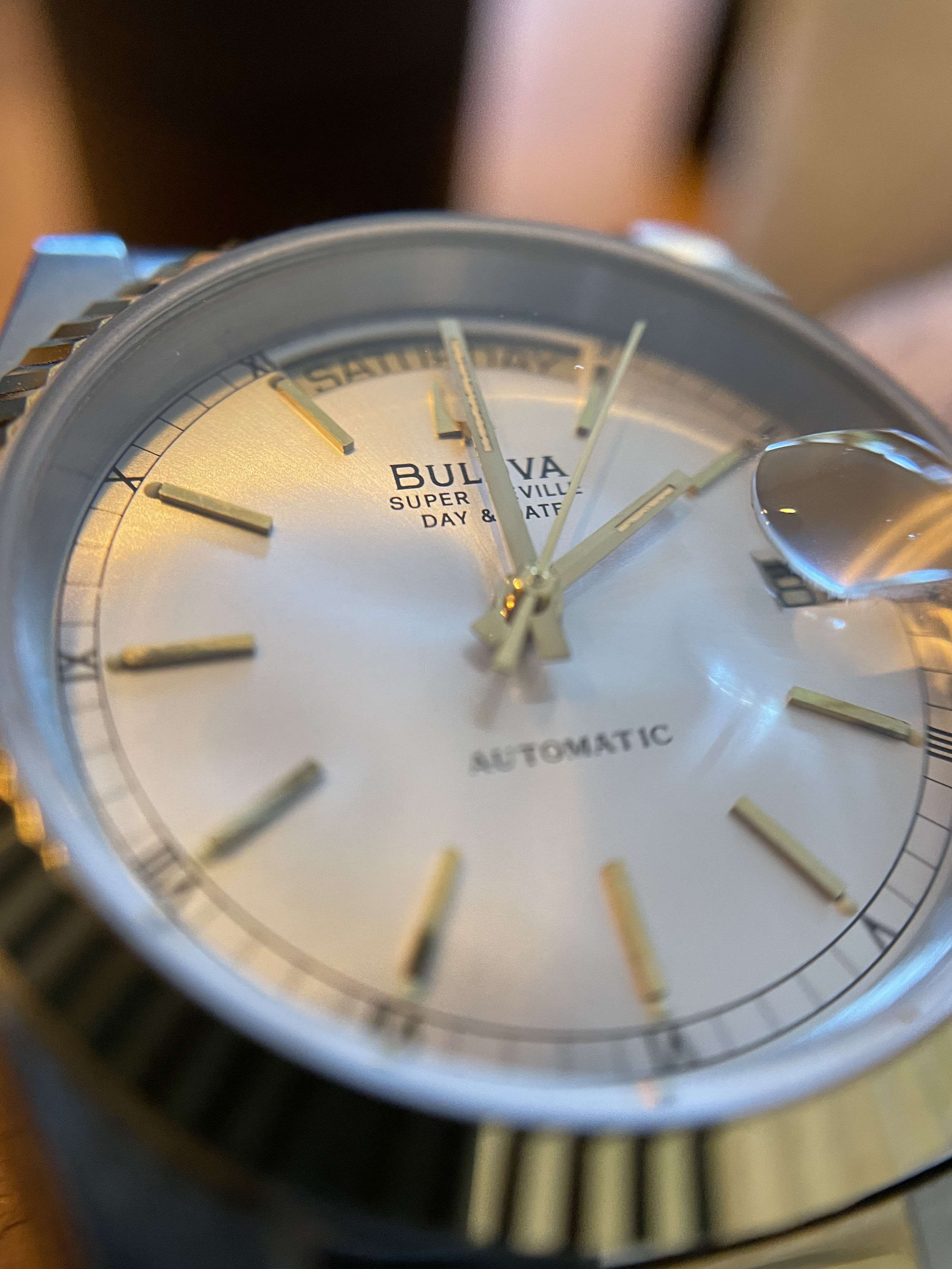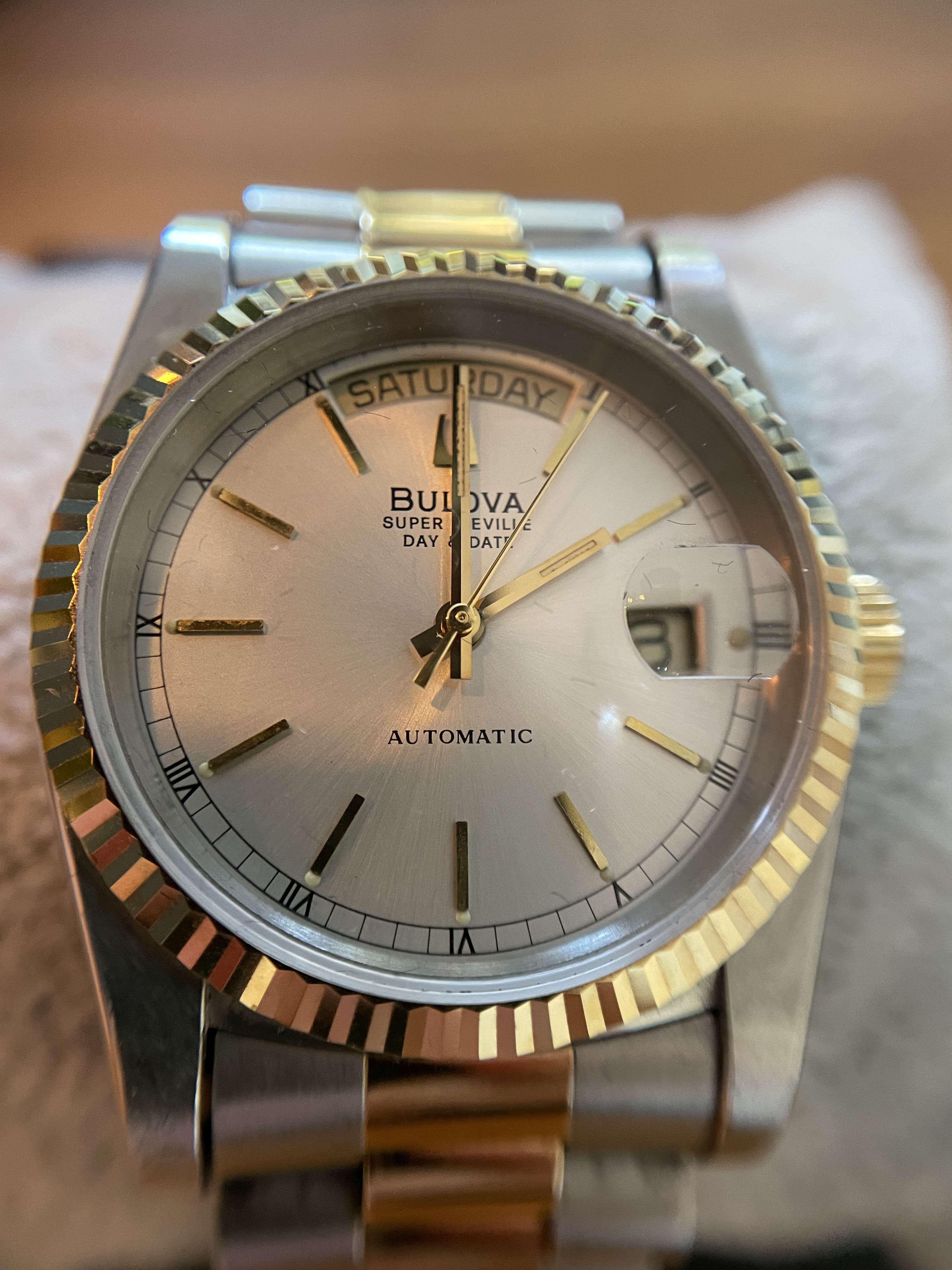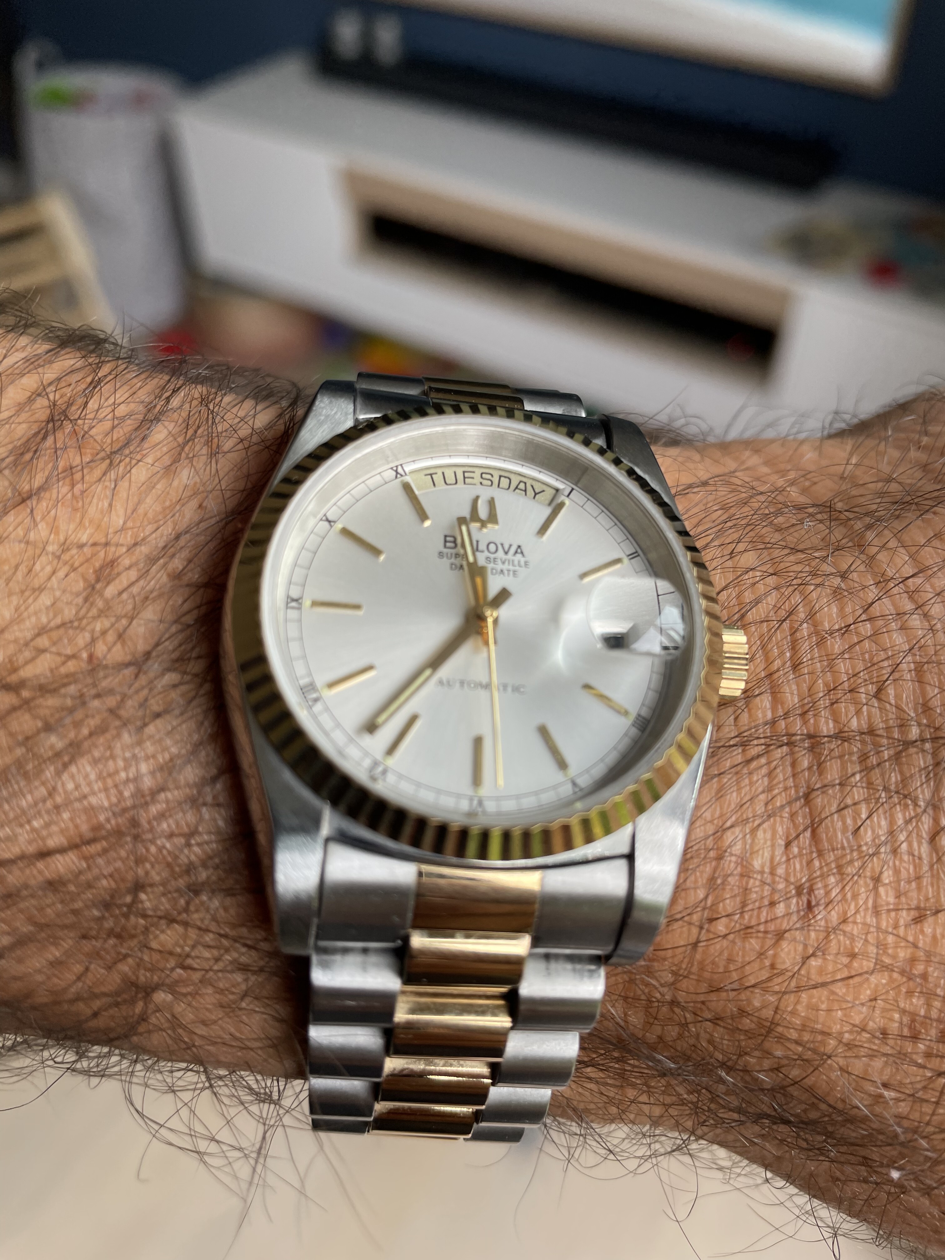 Gevonden op een veilingsite in Japan: deze Bulova Seville Day Date in 2-tone. Ik moet zeggen dat ik best onder de indruk ben van deze klok. Hij is gelukkig nog in mooie staat en draagt heerlijk.