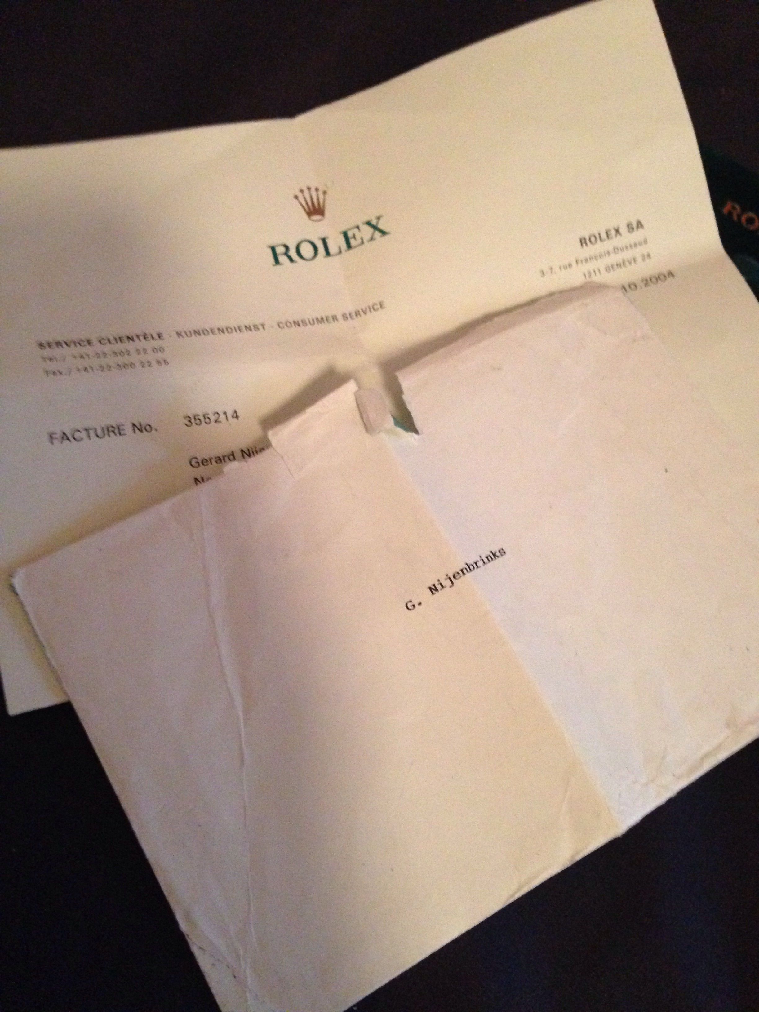 Maar met dergelijke papieren erbij weet je in ieder geval wel dat je Rolex goed geserviced is bij Rolex in Genève, en dat is wat mij betreft wel waardeverhogend.