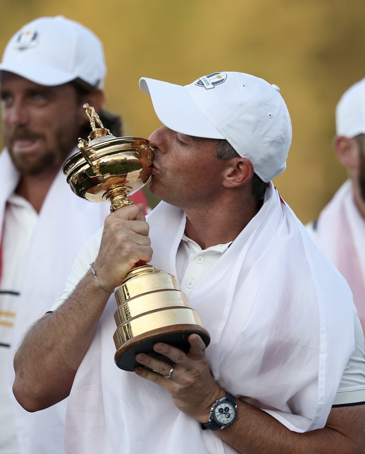 Jaaa…waar spreekkoren en bierdouches bij voetbal schering en inslag zijn, zul je dat bij een kak sport als golf niet tegenkomen Respect alom.