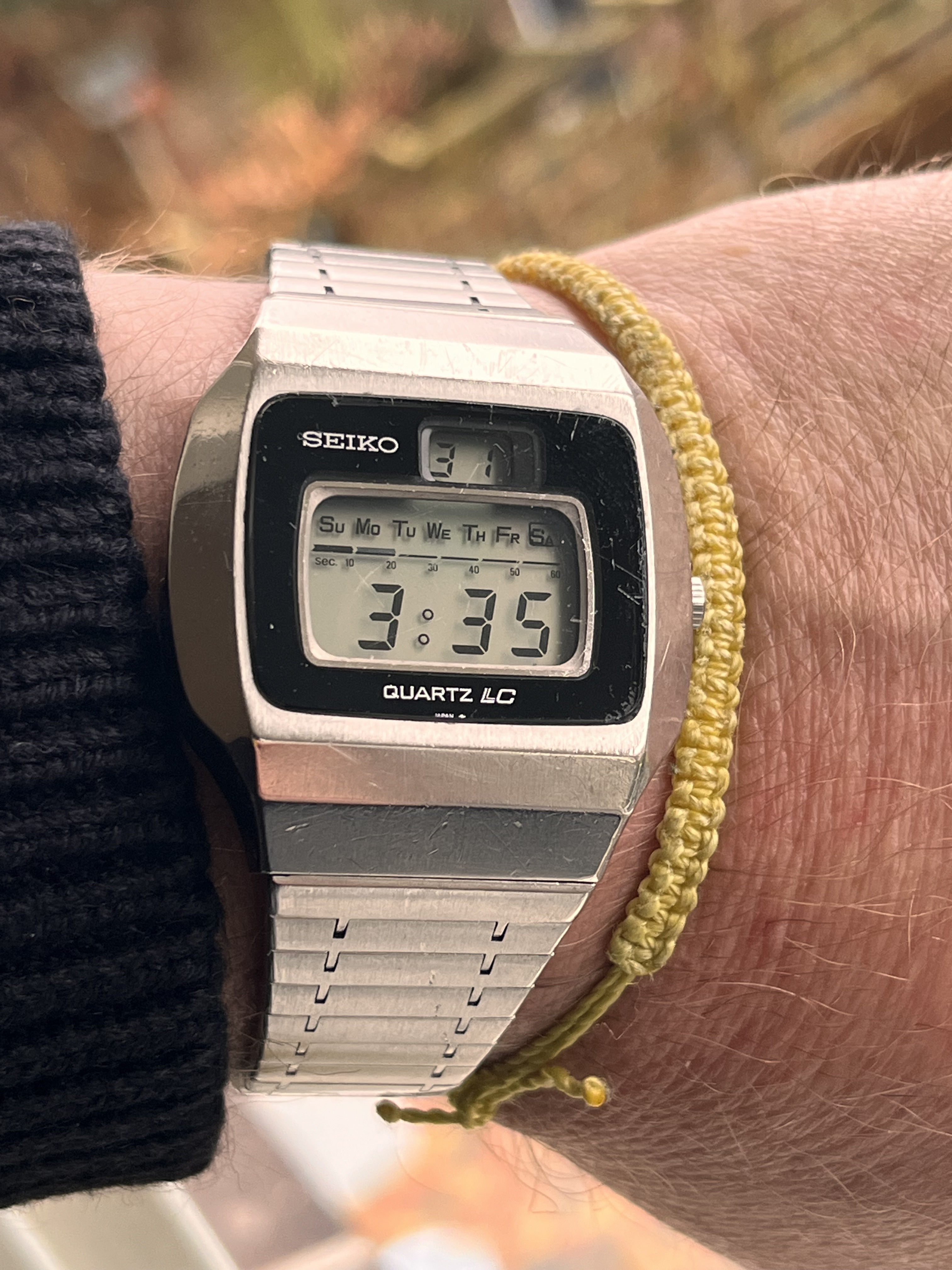 Haha! Stel je staat in de disco met deze Seiko 0124-0019 en er komt een meisje op je af. “Wat een toffe horloge! Wat is dat voor een?” En dan zeg je: “Deze had Higgins ook. Higgins van Magnum! Met die snor!” Meisje rent heel hard weg.