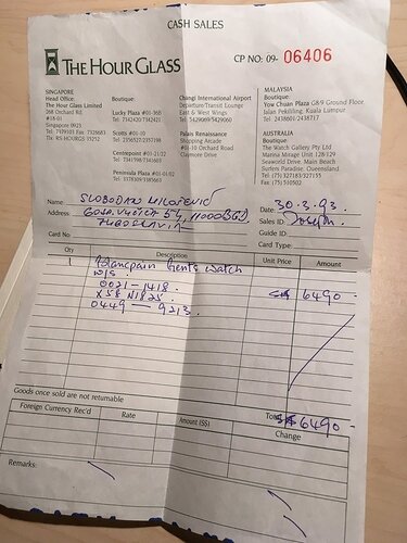 Ik neem aan dat er niet heel veel mensen daar rond liepen die Slobodan Milosevic heetten en een Blancpain konden veroorloven in 1993.(ten tijde van zijn presidentschap).
