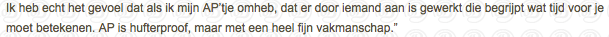 En er staan nog meer leuke quotes in. Pleurt zijn AP-tje overal tegenaan. Ach ja…