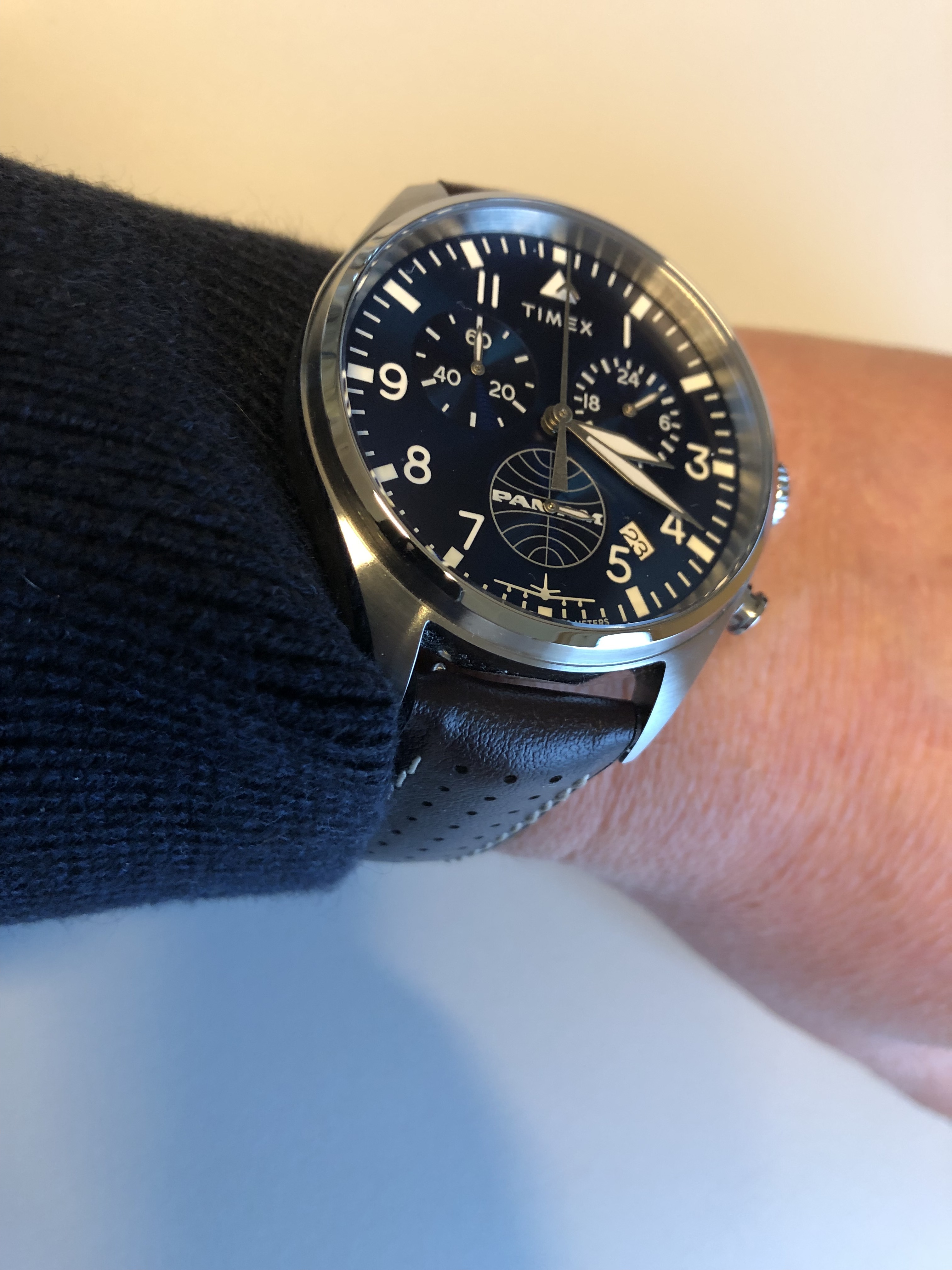 Mooi horloge. En ik vind de struisvogel leren band die er standaard aan zit juist zo schitterend mooi.