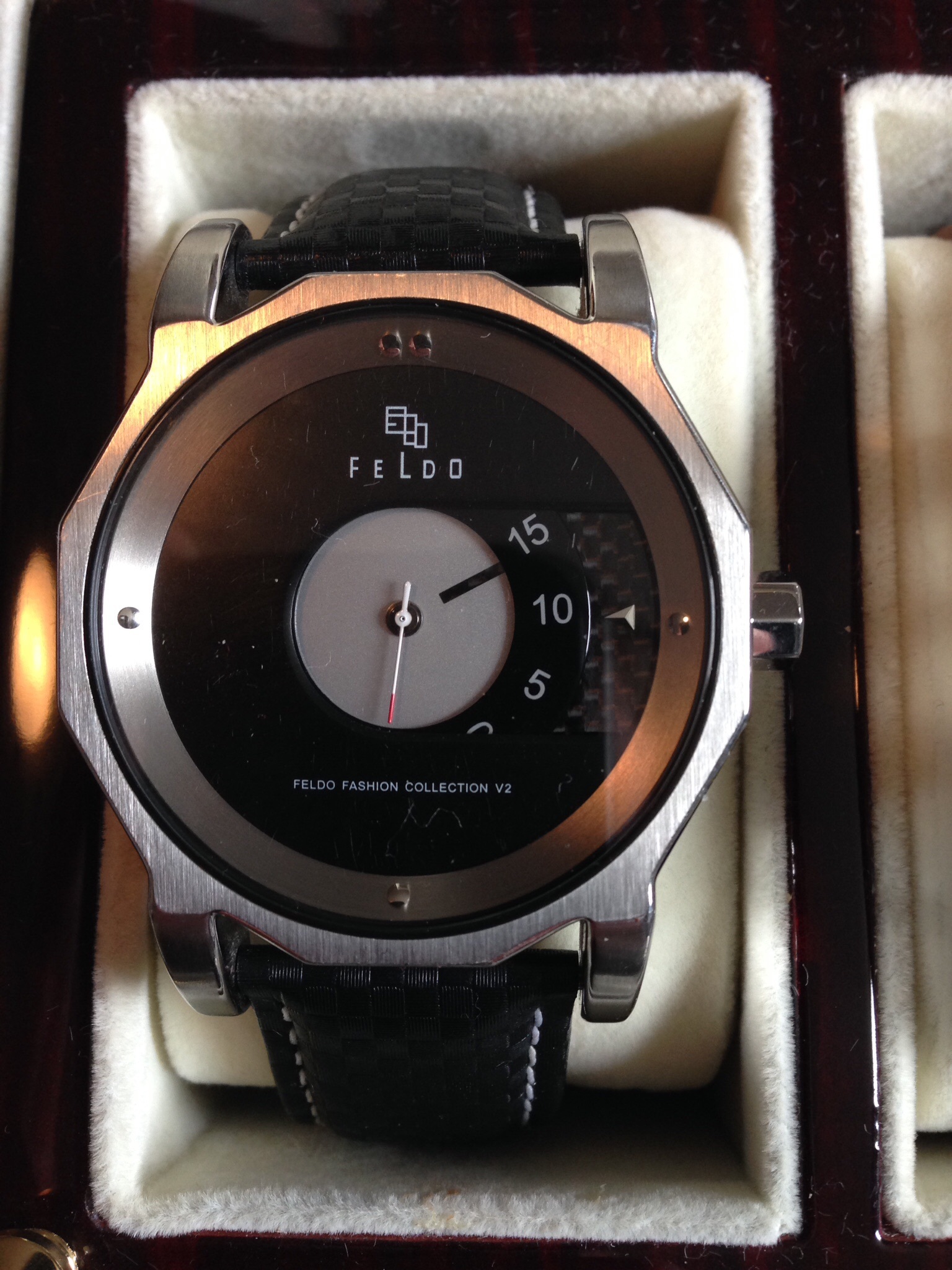 Ik heb niet zó’n apart horloge. Zo vreemd als ik in sommige dingen ben , zo ‘doorsnee’ is mijn bescheiden horlogecollectie. Deze (zie hieronder) is eigenlijk de meest ‘afwijkende’ in de horlogekist, op dit moment. Een jaar of tien geleden gekocht, op zoek naar een leuk vierkant horloge. Denk anderhalf jaar geleden een keer nieuw bandje gegeven en beetje laten poetsen (dat hoogglans metaal krast like a bitch!). Draag 'm heel weinig. Misschien dat ik 'm maandag 'ns omdoe, op quartzdag.