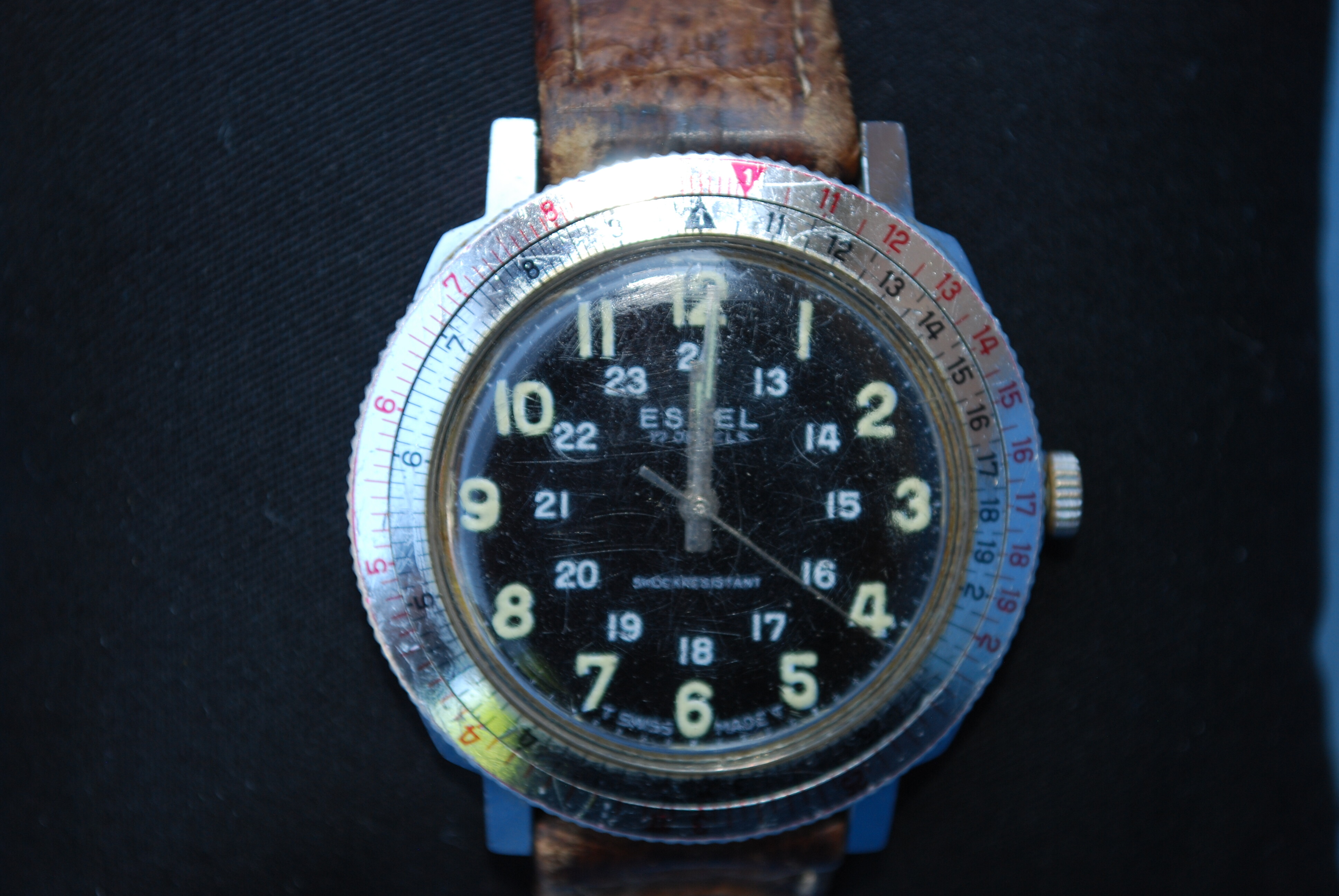 Hierbij een leuk handmatig op te winden horloge. Merk? Essel?