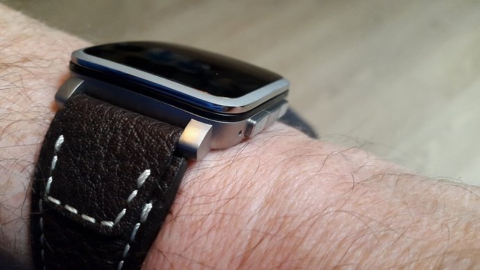 Hij is een millimeter dikker dan de gewone Pebble Time. Dat is te wijten aan de gebruikte materialen én de grotere batterij (10 dagen beloofd, zal in de praktijk een dag of 6-7 zijn).
