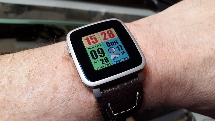 De watchface die je ziet is één van mijn eigen projecten (Cool Worldtime). Te vinden in de Pebble Watchappstore, samen met duizenden andere. Allemaal (nu in ieder geval nog) voor nop.