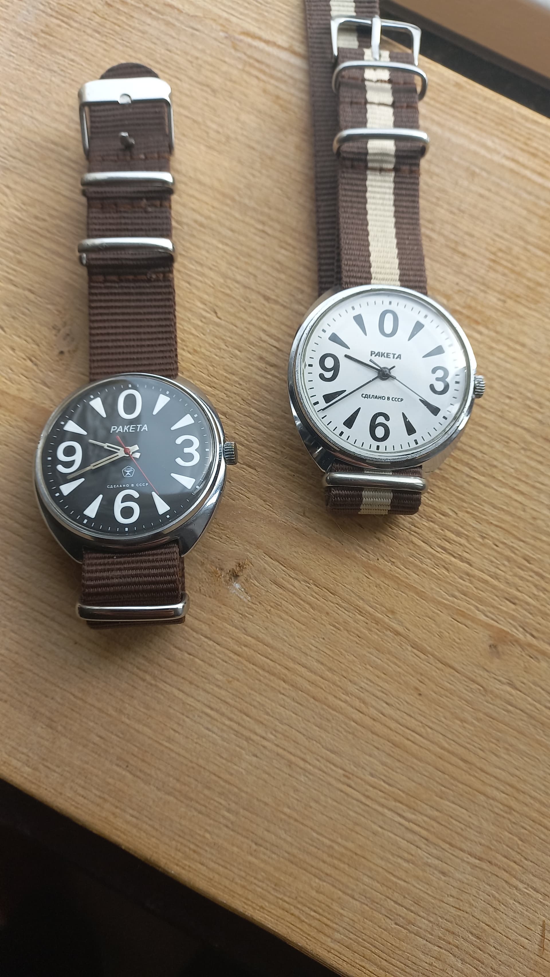 Beide horloges tikken op het oerdegelijke handopwind-uurwerk uit de Petrodvorets-fabriek. Ik heb ze voor nu op een paar matchende NATO-straps gezet om die vintage “toolwatch” vibe te benadrukken.