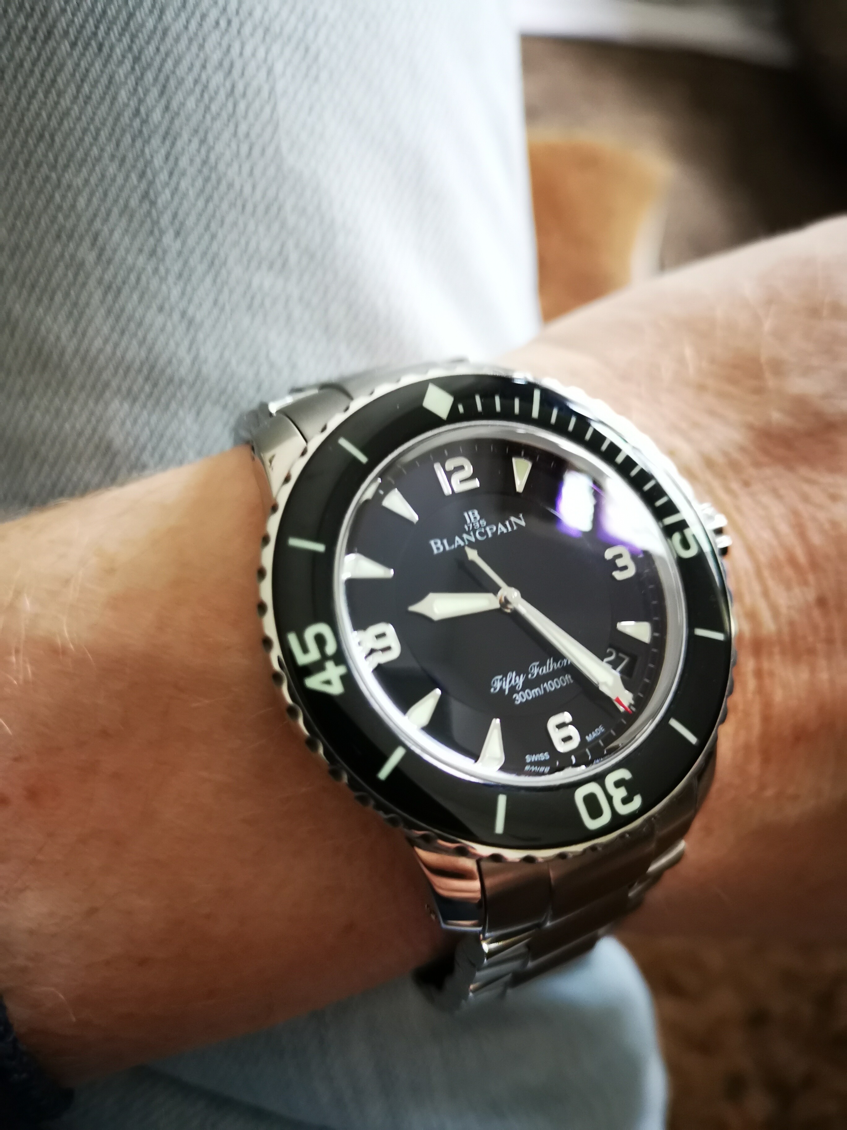 Helaas niet. Dat komt omdat deze Blancpain niet van mij is maar van een vriend die het niet langer draagt en daarom heb ik het nu al een paar maanden te leen.