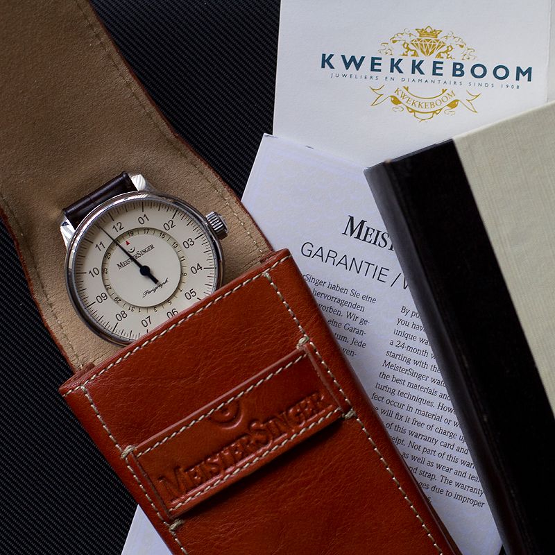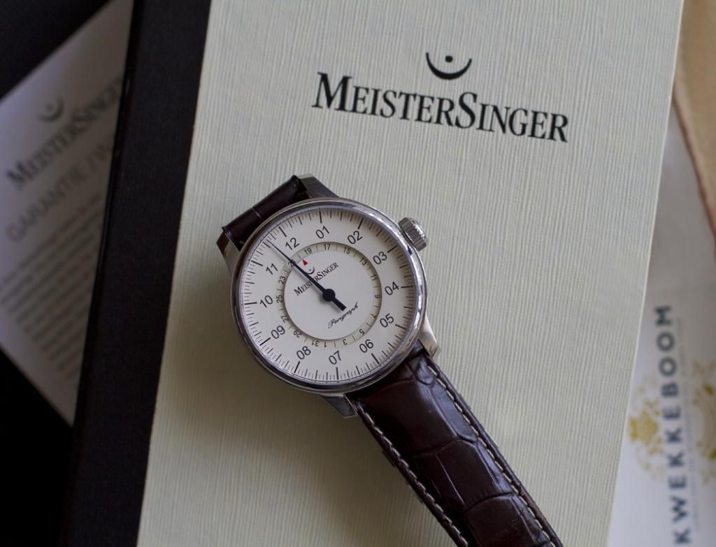 Al sparende voor dit klokje kwam ik 'm tegen in een advertentie. 500 mtr van mijn woning bleek er een liefhebber te zijn die geld nodig had voor zijn zoveelste gitaar… En de keuze viel op de MeisterSinger omdat ie het meeste op zou brengen.