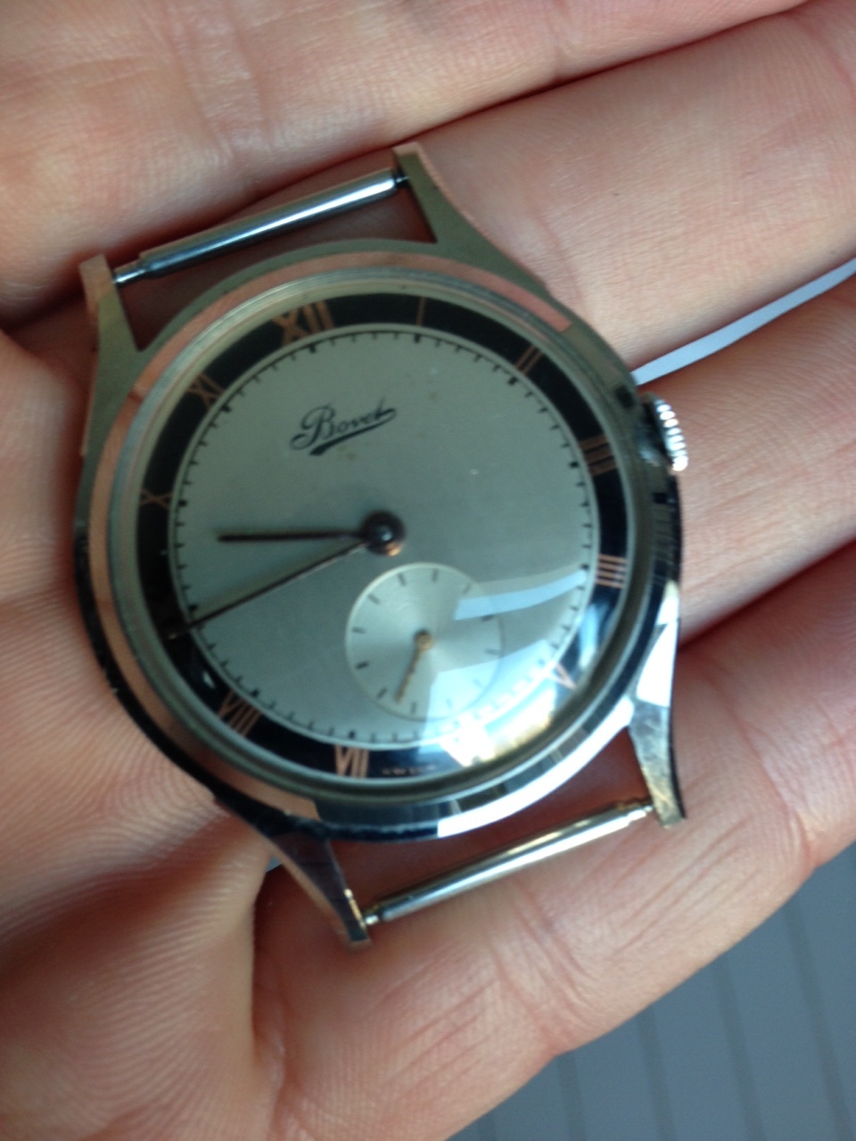 Die durf ik niet als zakhorloge te dragen, al zit hij aan twee kettingen vast.