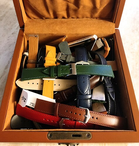 Toen ik terug naar 2horloges ging vond ik het belangrijk dat ze beiden dezelfde maat hadden. Dat was dan 18mm. Ondertussen zit ik terug op 12, waarvan de meeste 18 en 19mm. In deze maten heb ik een vrij brede verzameling bandjes opgebouwd.