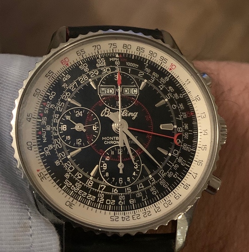 Hij lijkt mij OK; ook onder uitvergroting. Maar bij blijvende twijfel het beste even laten openen door iemand die echt veel verstand van Breitlings heeft. En ook de correcte dekseldoppen! Watchinside zou je kunnen proberen, of Timefix.