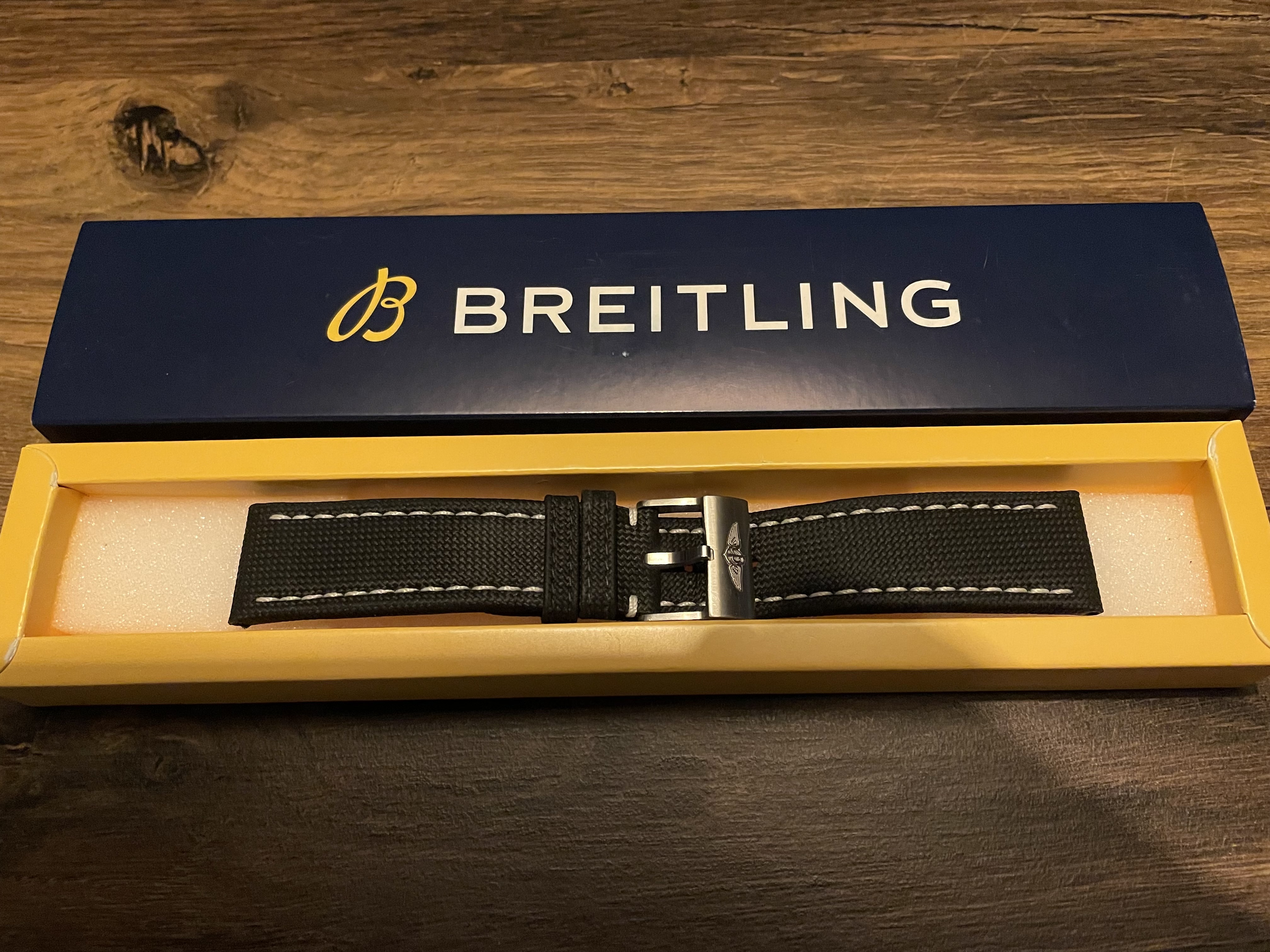 Nieuwe Breitling Militairy Anthracite lederen band.