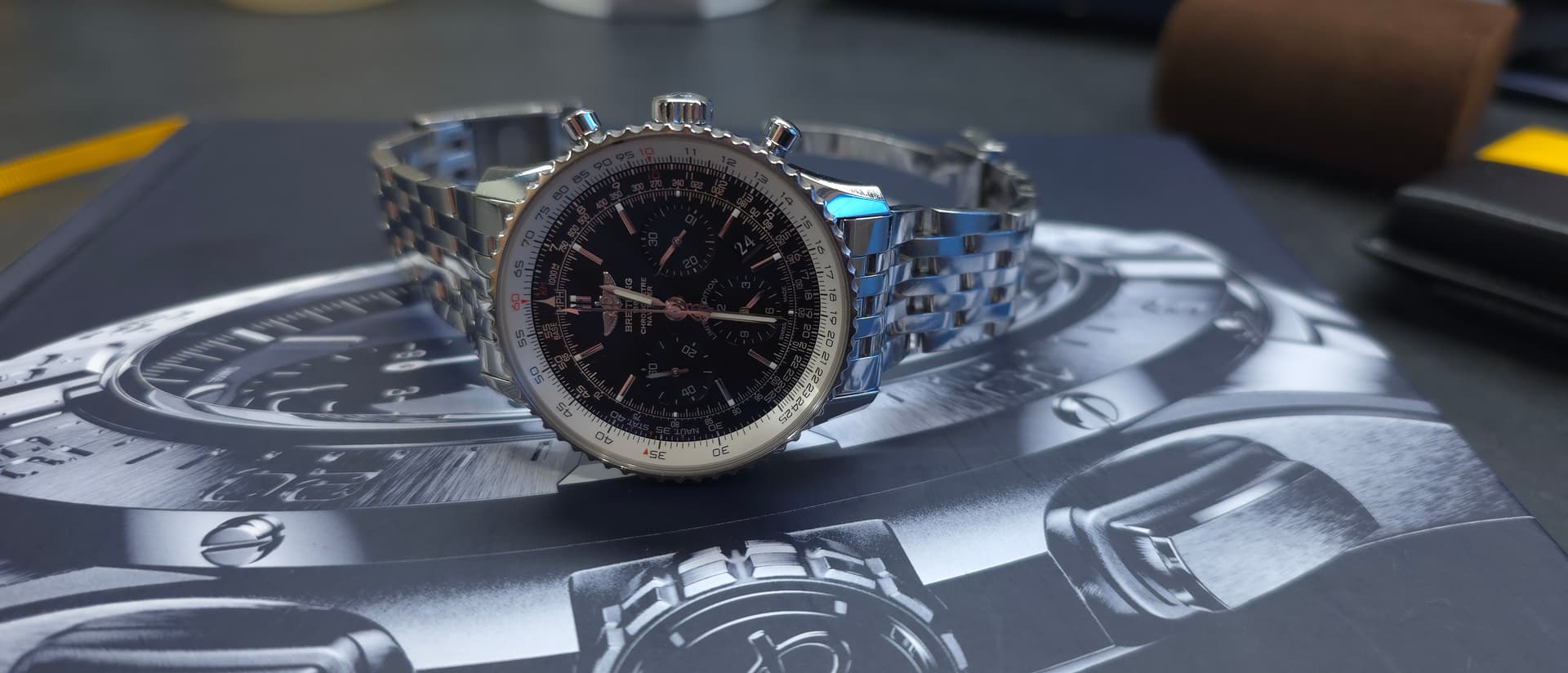 De Navitimer krijgt toch minder draagtijd dan verwacht, deze mag naar een volgende liefhebber toe. Mooie Japanse Limited Edition, gelimiteerd tot 400 stuks voor de Japanse markt.