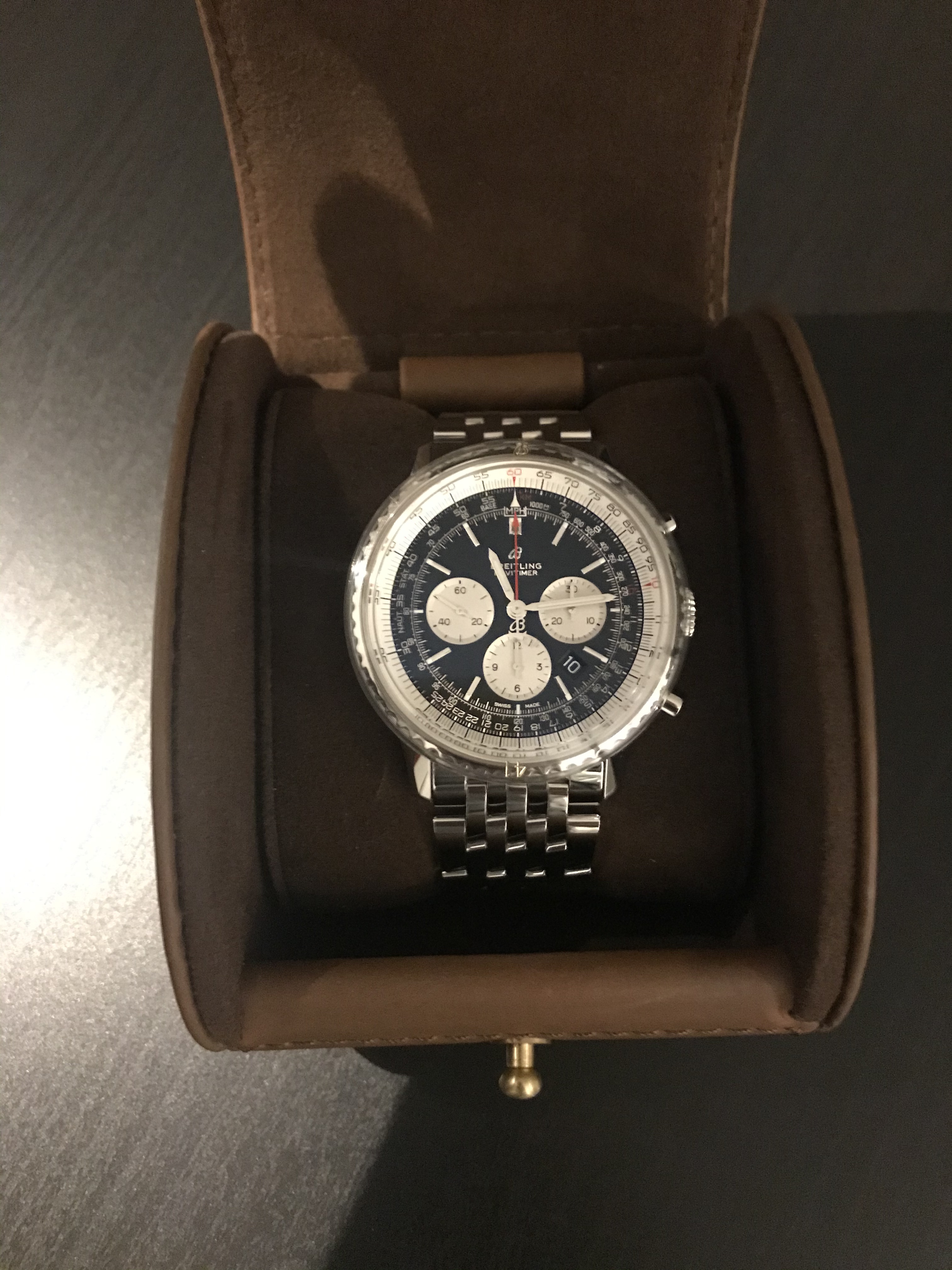 De Breitling draagt toch wel iets groter naar mijn gevoel, kan ook aan de rubber band liggen welke mooi breed staat…