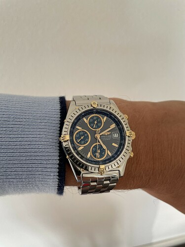 Nu heb je natuurlijk ook de old navitimer tweedehands wel. Die staat als two tone ook nu op Chrono in Nederland. Alleen heb ik van oudere modelen wel vaak gezien dat zeker bij blauw de plaat afbladerd. Voor nieuwe modelen valt hier nog niks zinnigs over te zeggen.