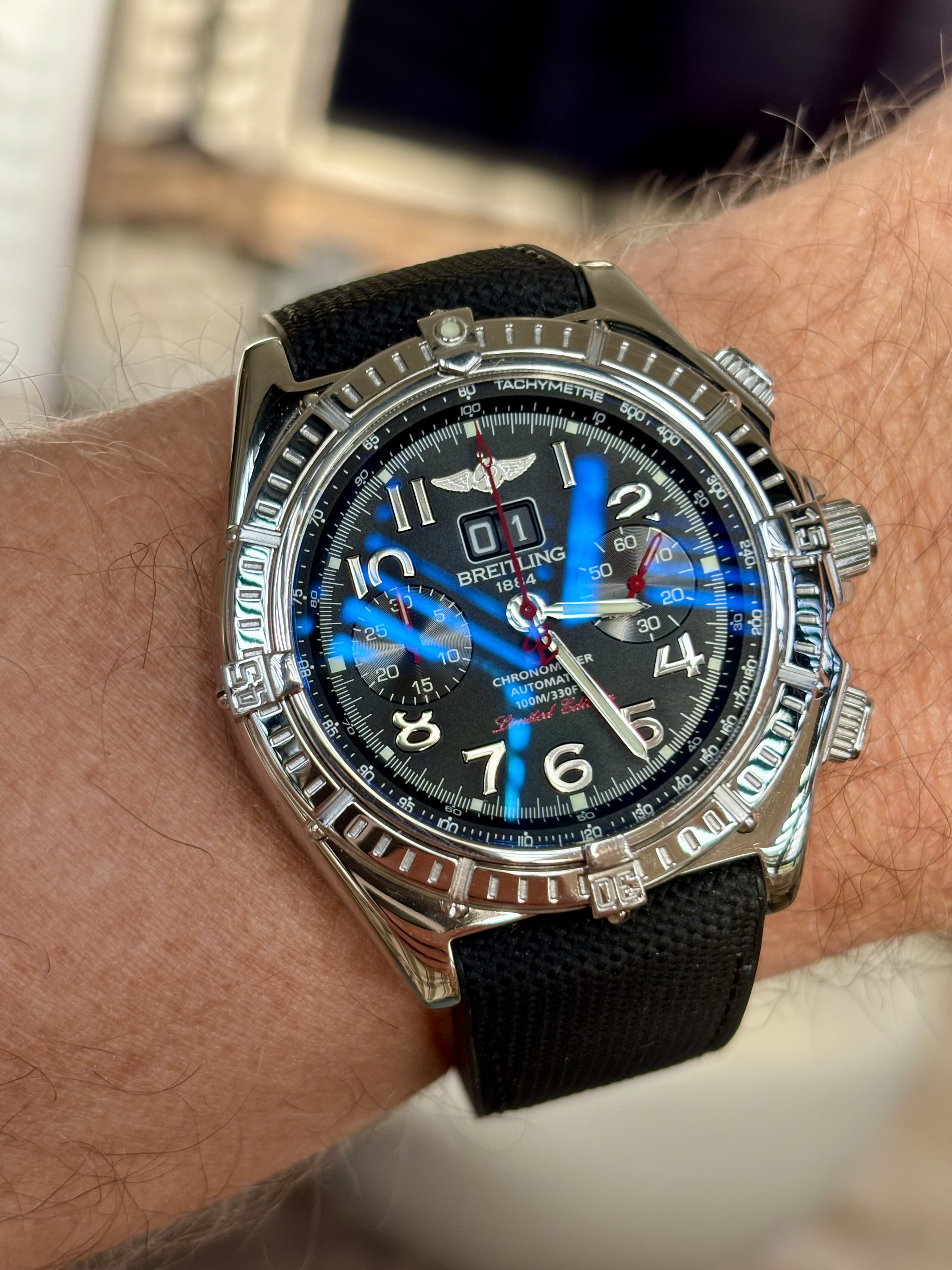 Geweldig, zie je niet vaak inderdaad maar ontzettend leuke zeer betaalbare Breitling! Beste kleur wijzerplaat ook!
