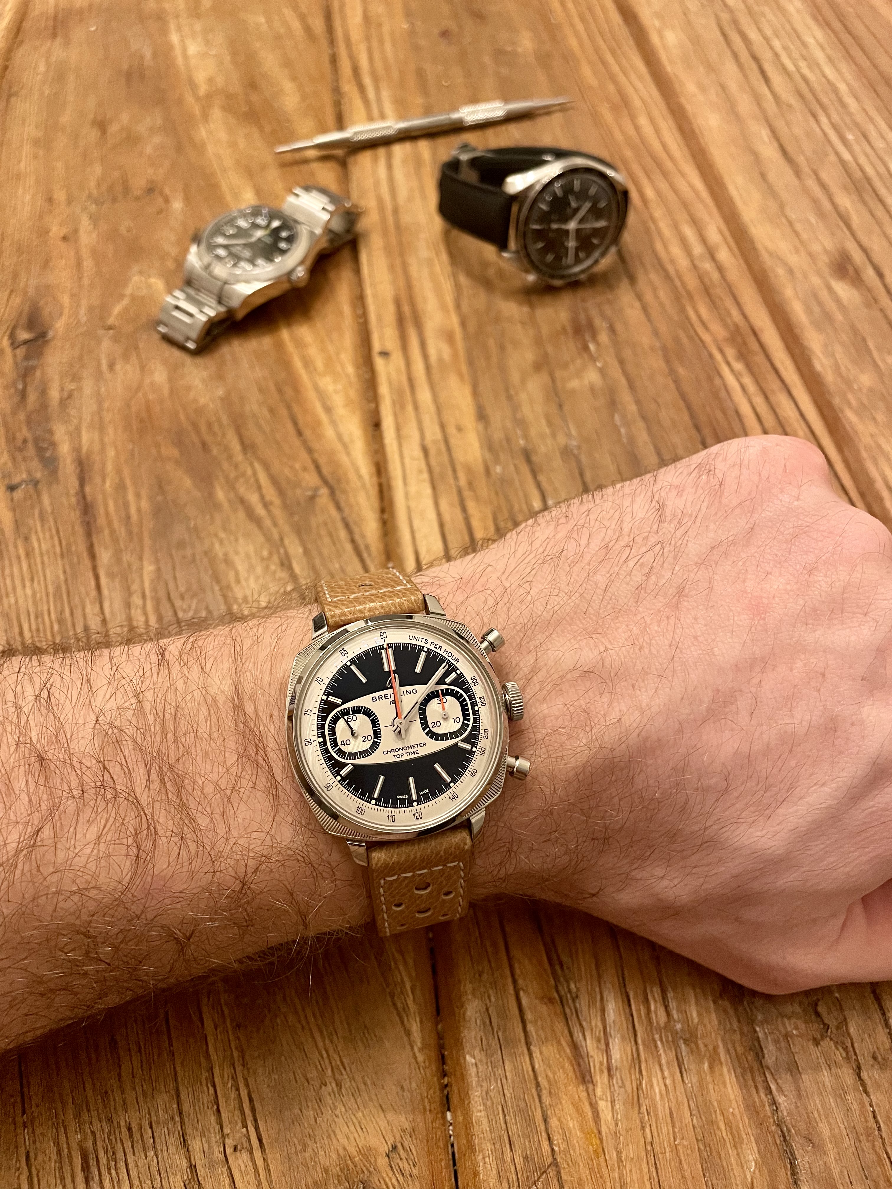 Ik was zelf altijd groot liefhebber van horloges met stalen band, maar Breitling vind ik doorgaans het mooiste op leer.