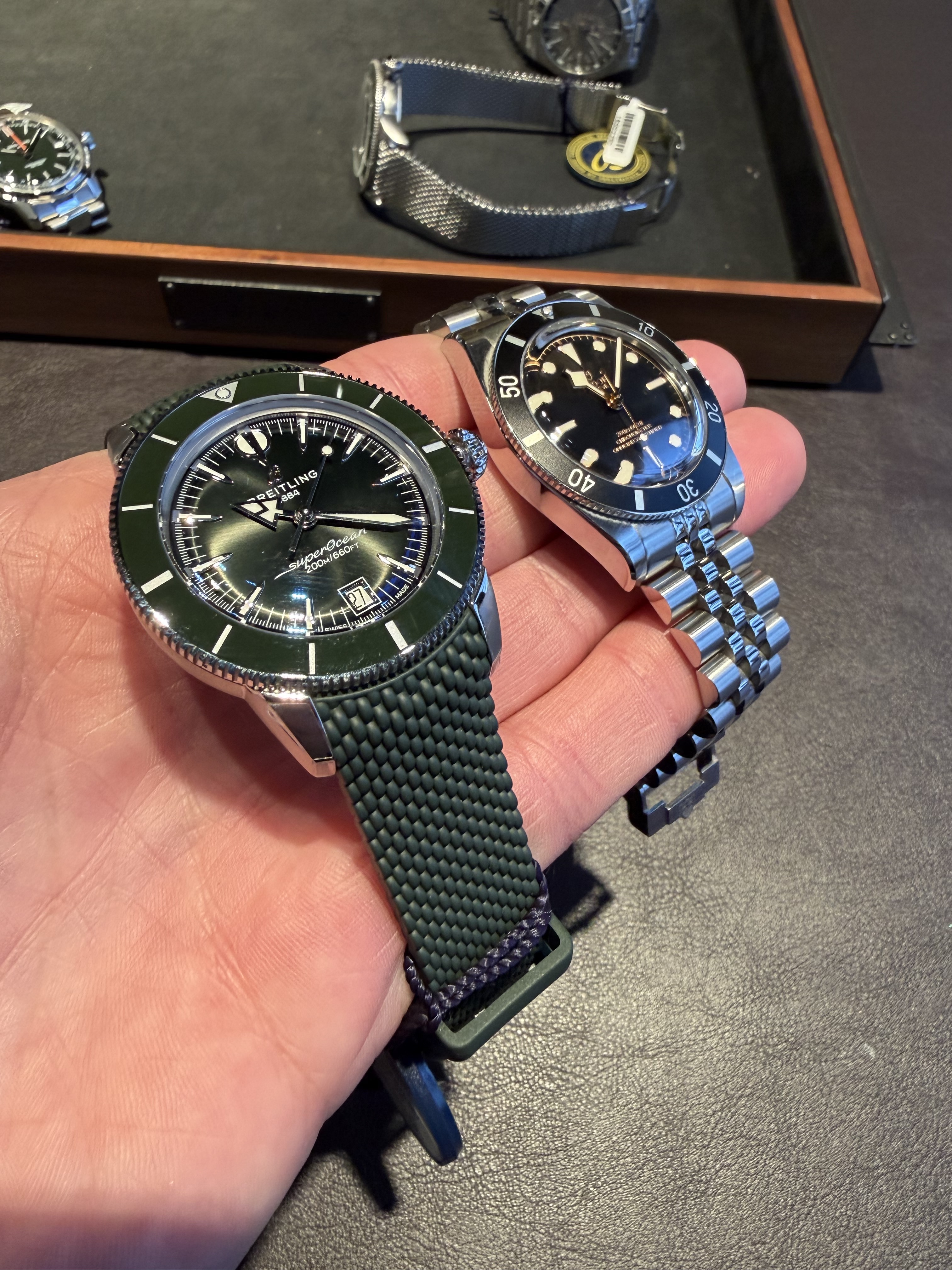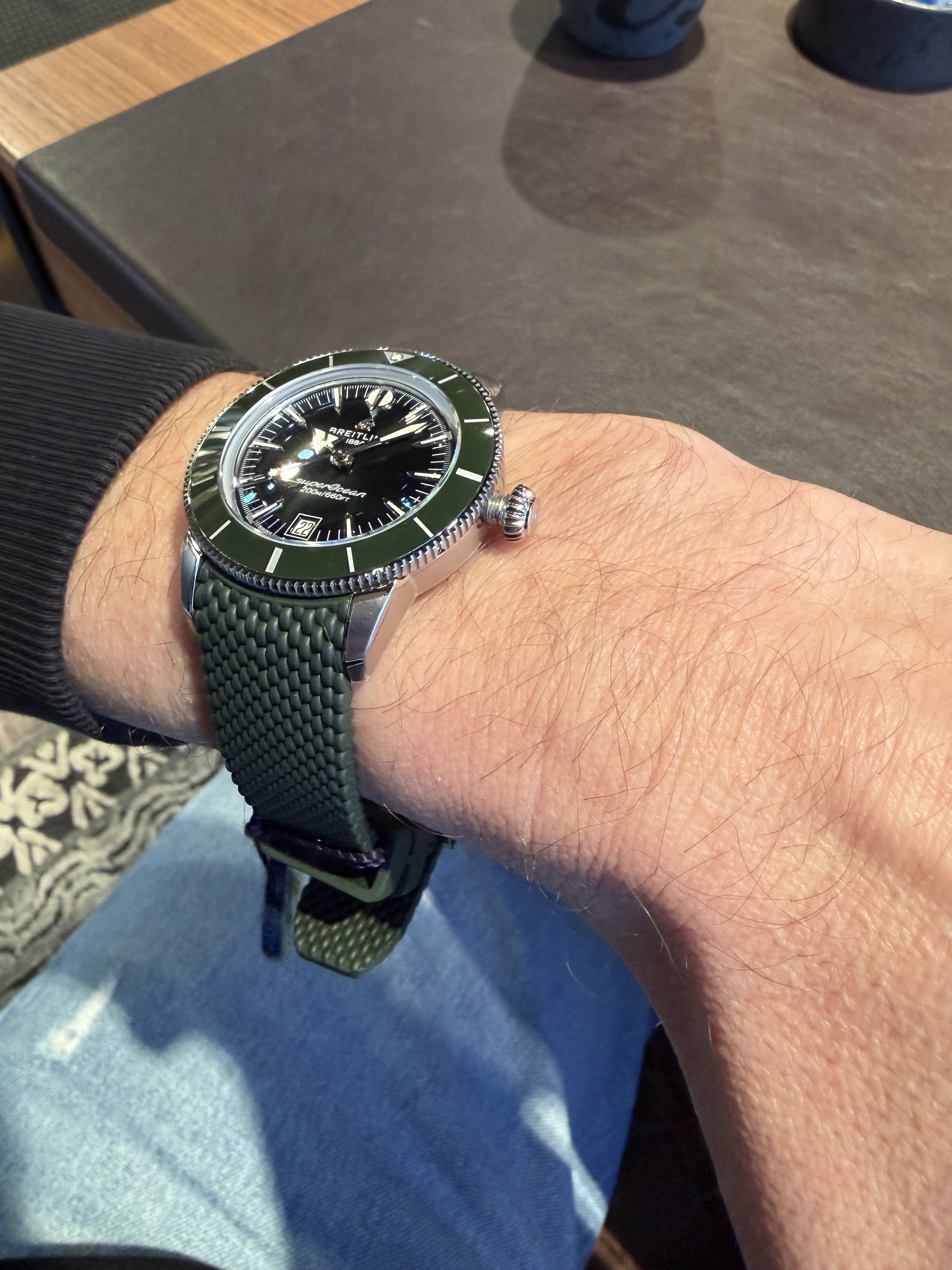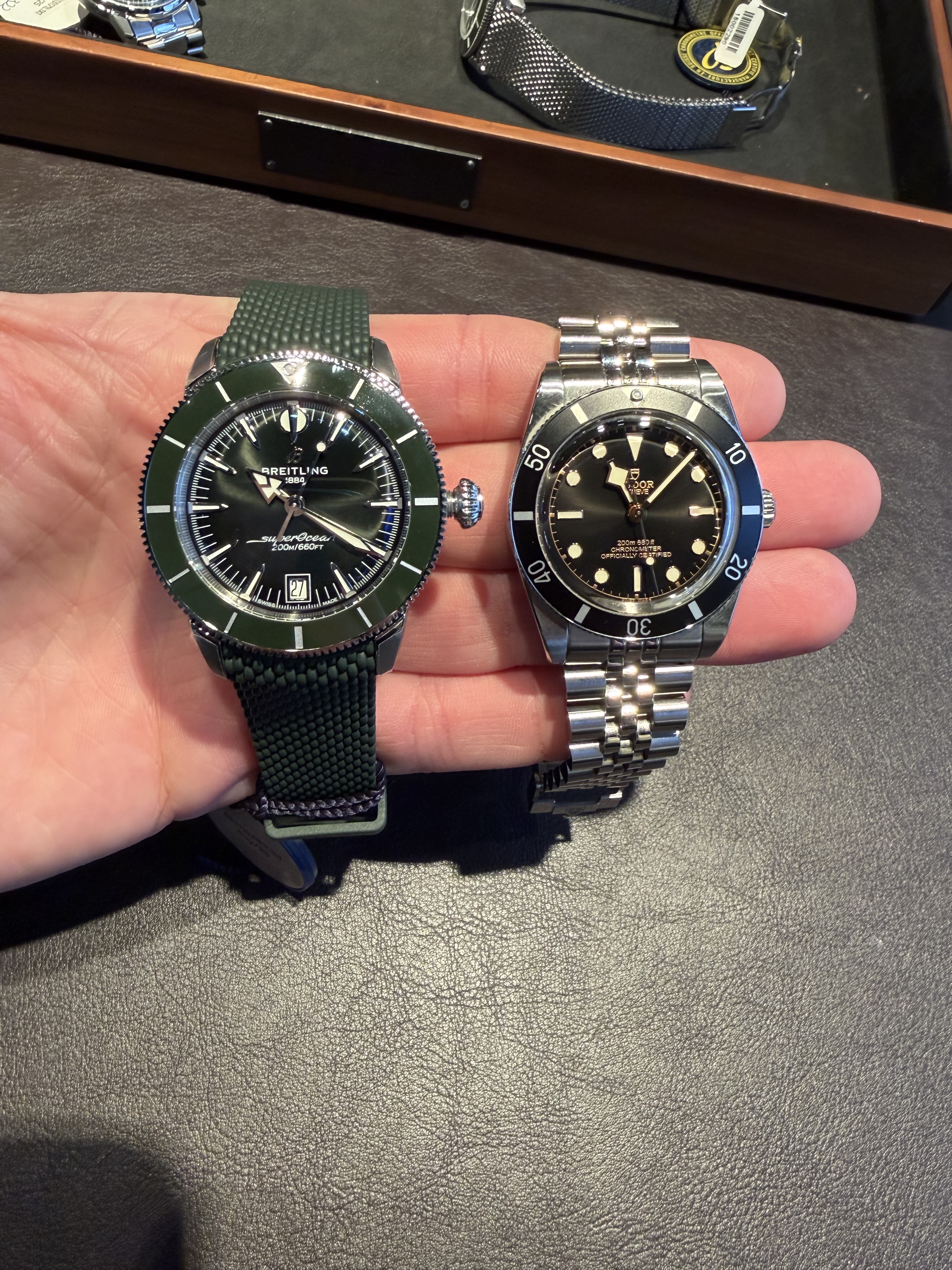 Kwam om de chronomat 36 te passen, maar die is echt te klein. Waarvan ik dacht dat 40mm veel te groot zou zijn was ik aangenaam verrast.