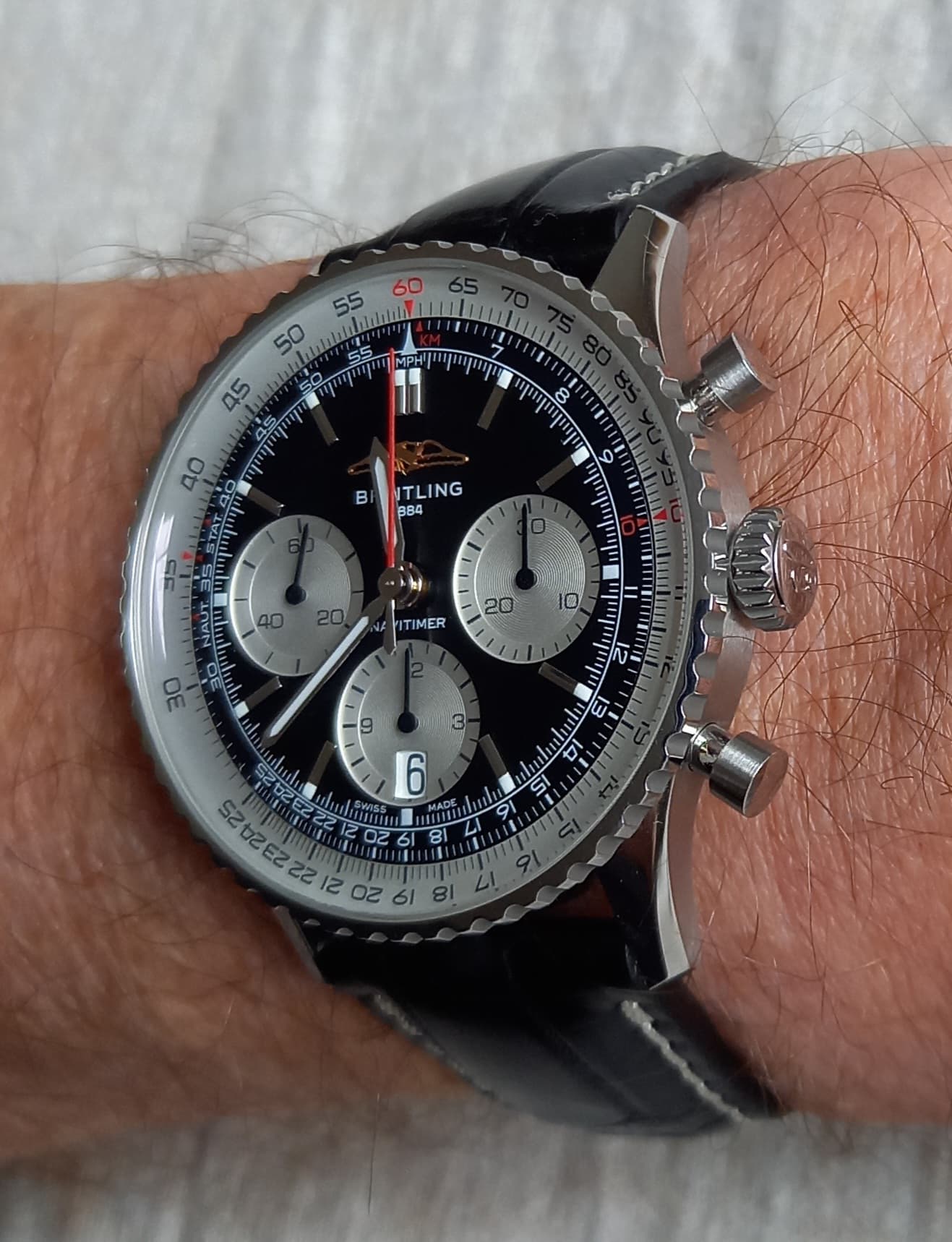 Grappig dat ze in deze de ‘Sporty’ B01 lepelen, terwijl alle andere Navitimers de ‘Elegant’ B01 hebben.