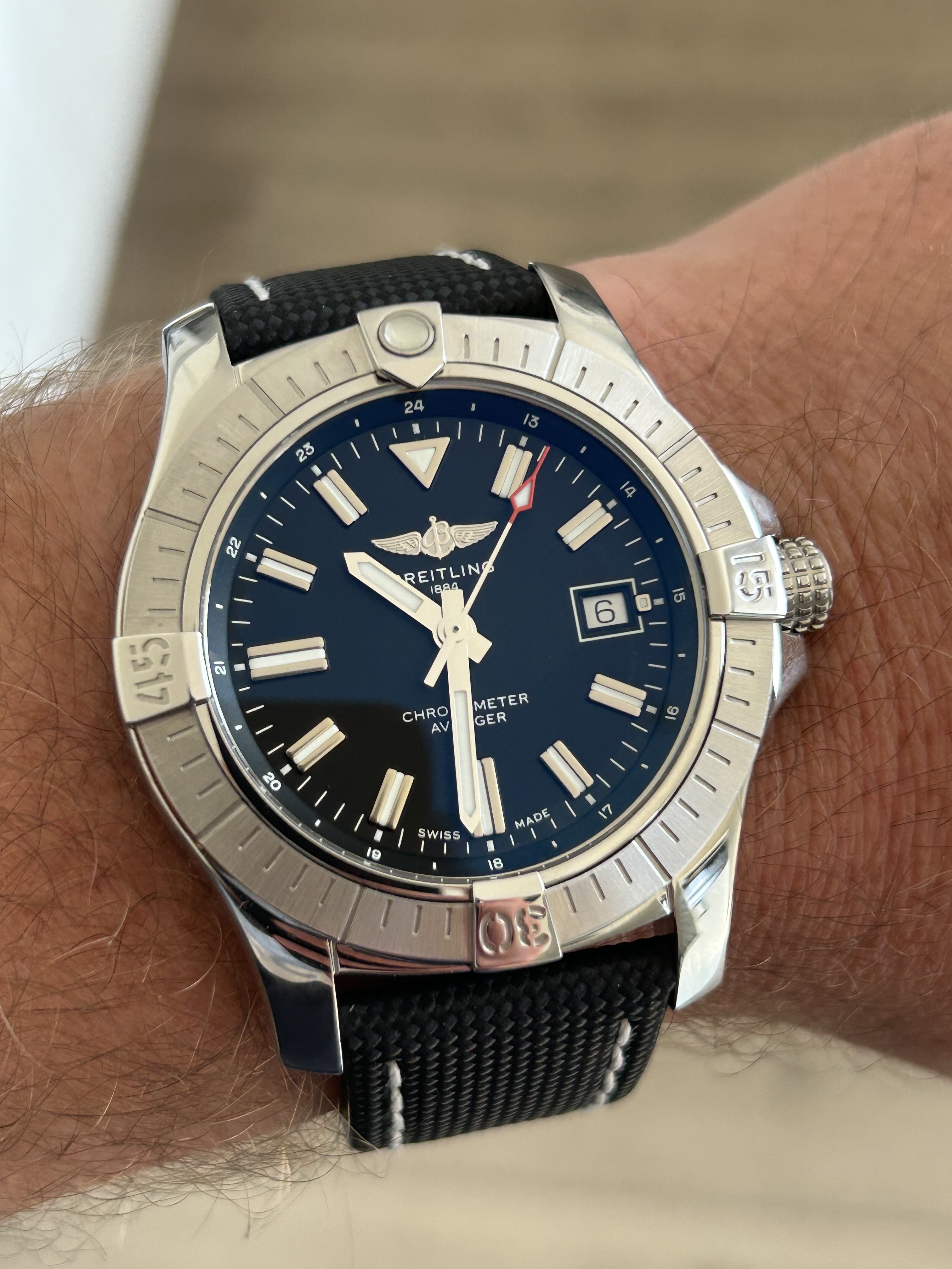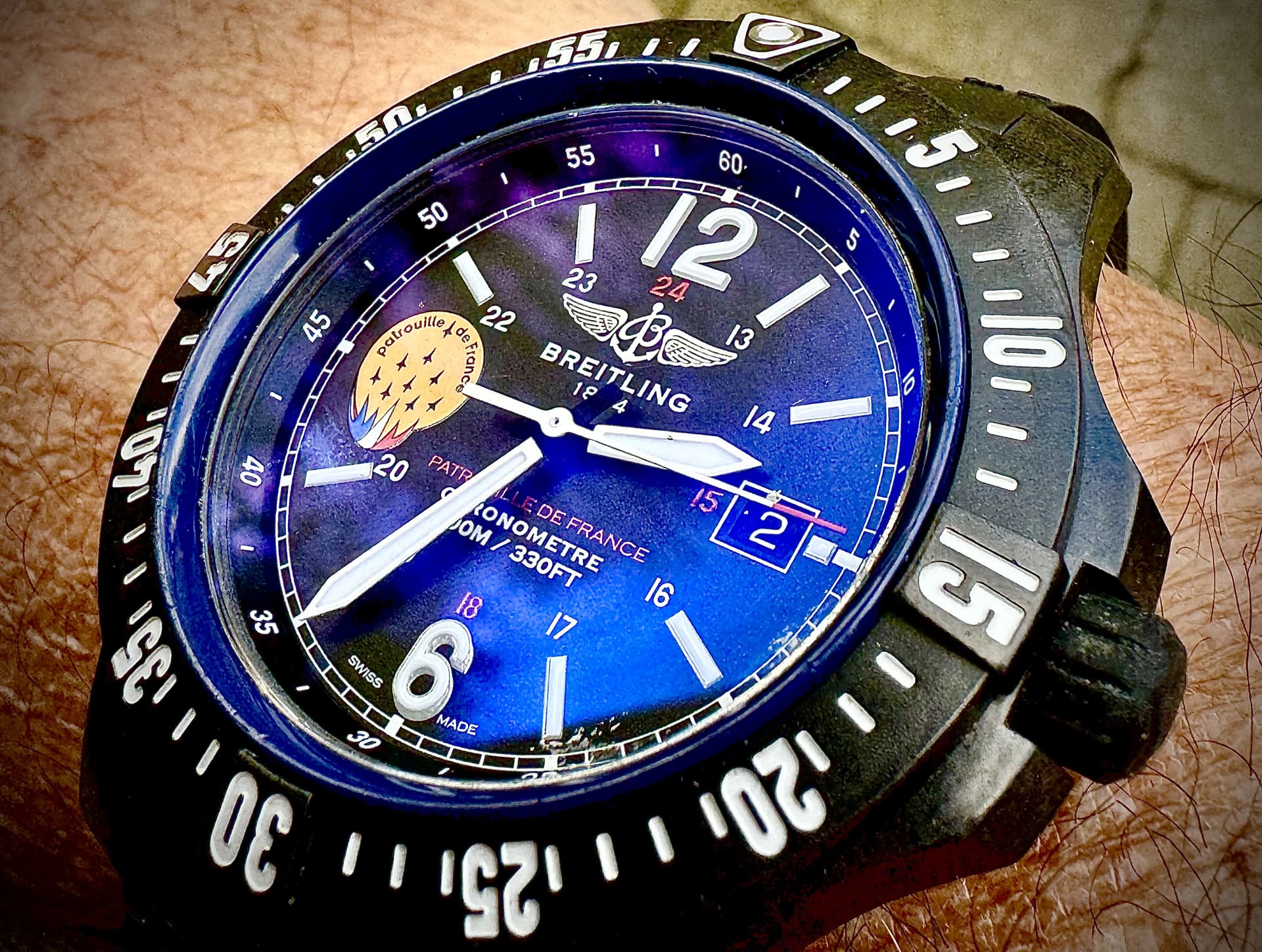 Vind het mooi hoe de zwarte wijzerplaat door de AR coating soms heel donkerblauw lijkt. Leuk effect