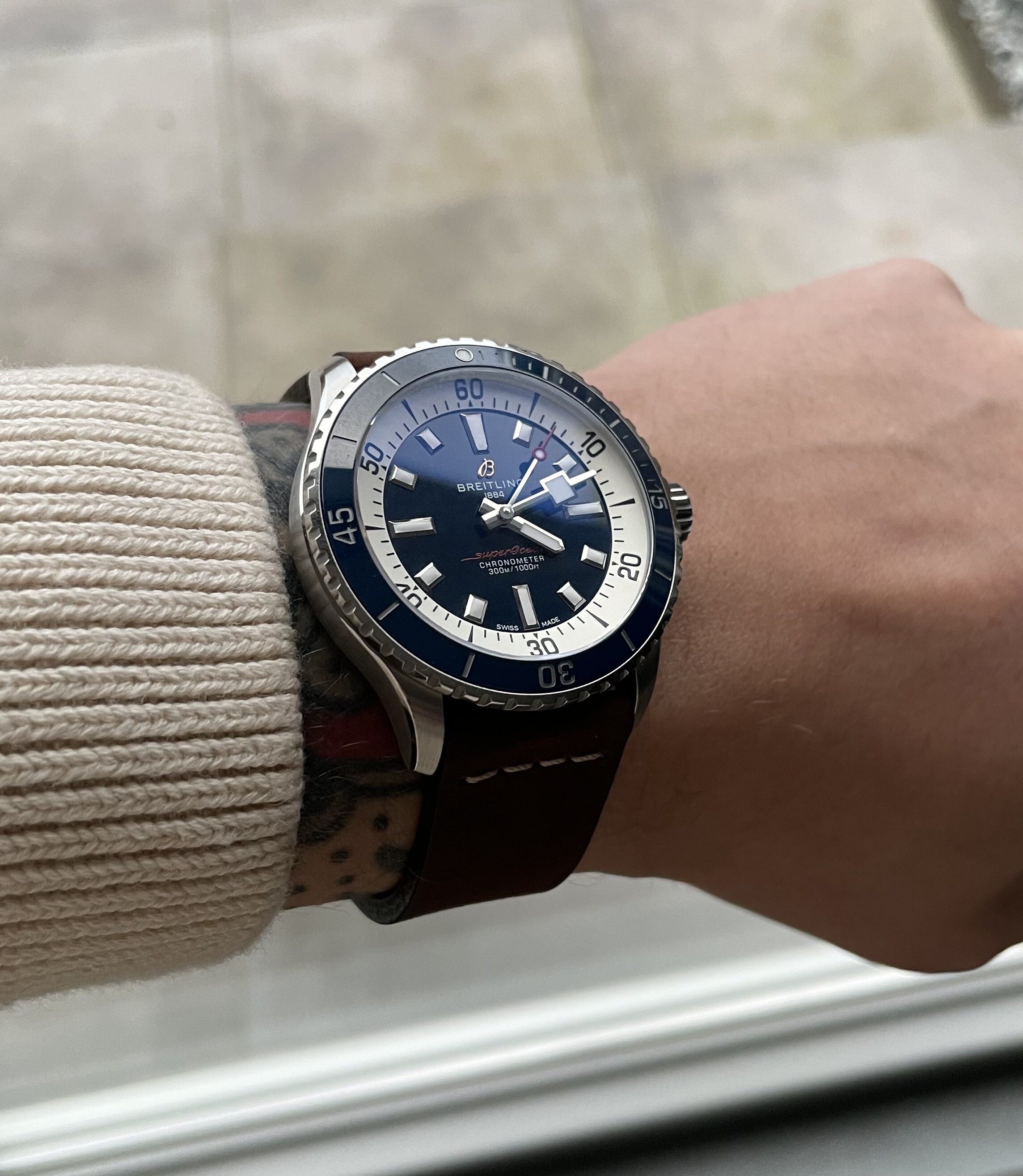 maar morgen doe ik hem weer om , heb vandaag een donkerblauwe trui aan en daar past de oude SuperOcean beter bij …