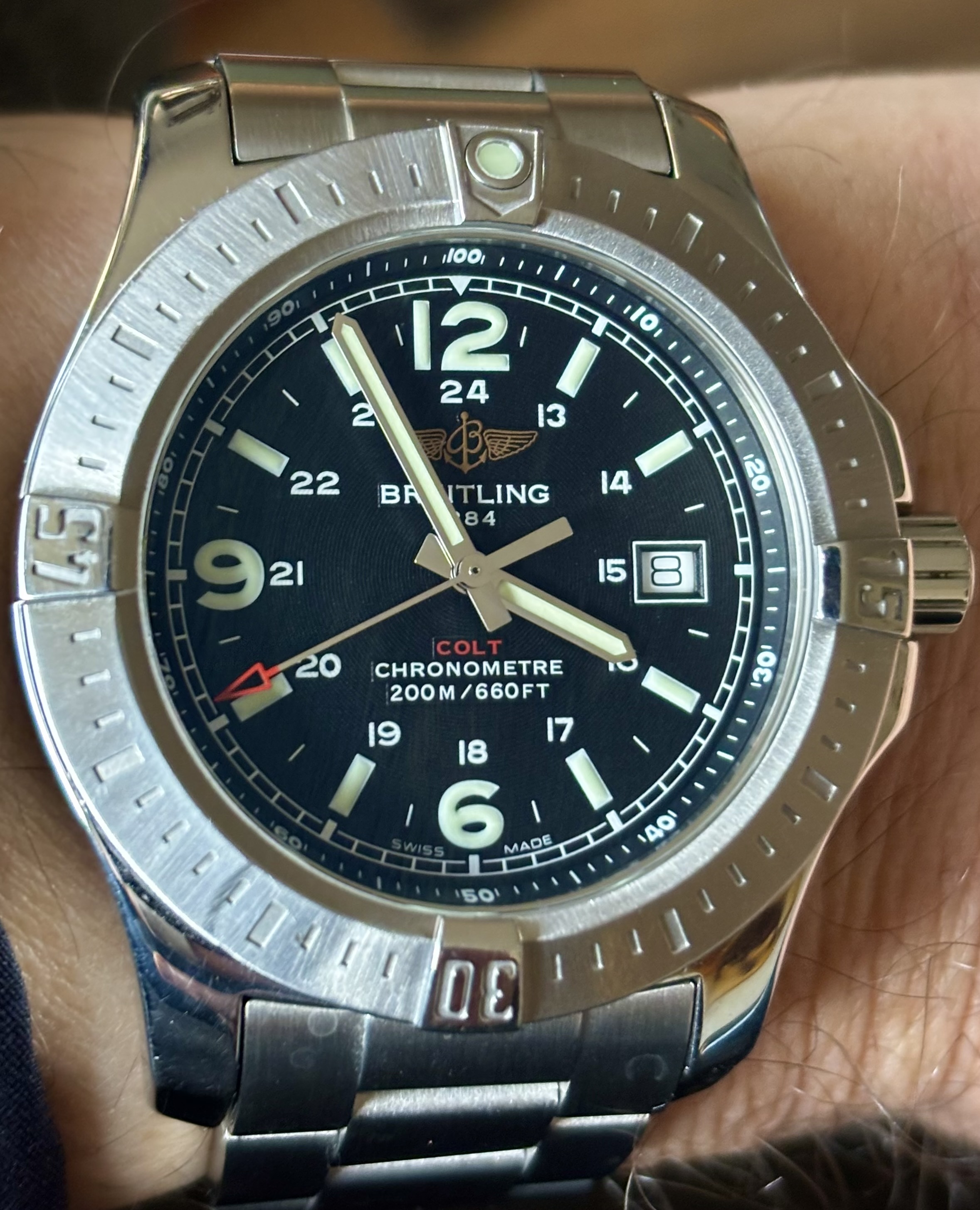 Het horloge waar het allemaal mee begonnen is in 2003 . Mijn smaak is inmiddels een beetje veranderd maar “hij” voelt wel als vanouds. Non-stop gedragen tot 2009.