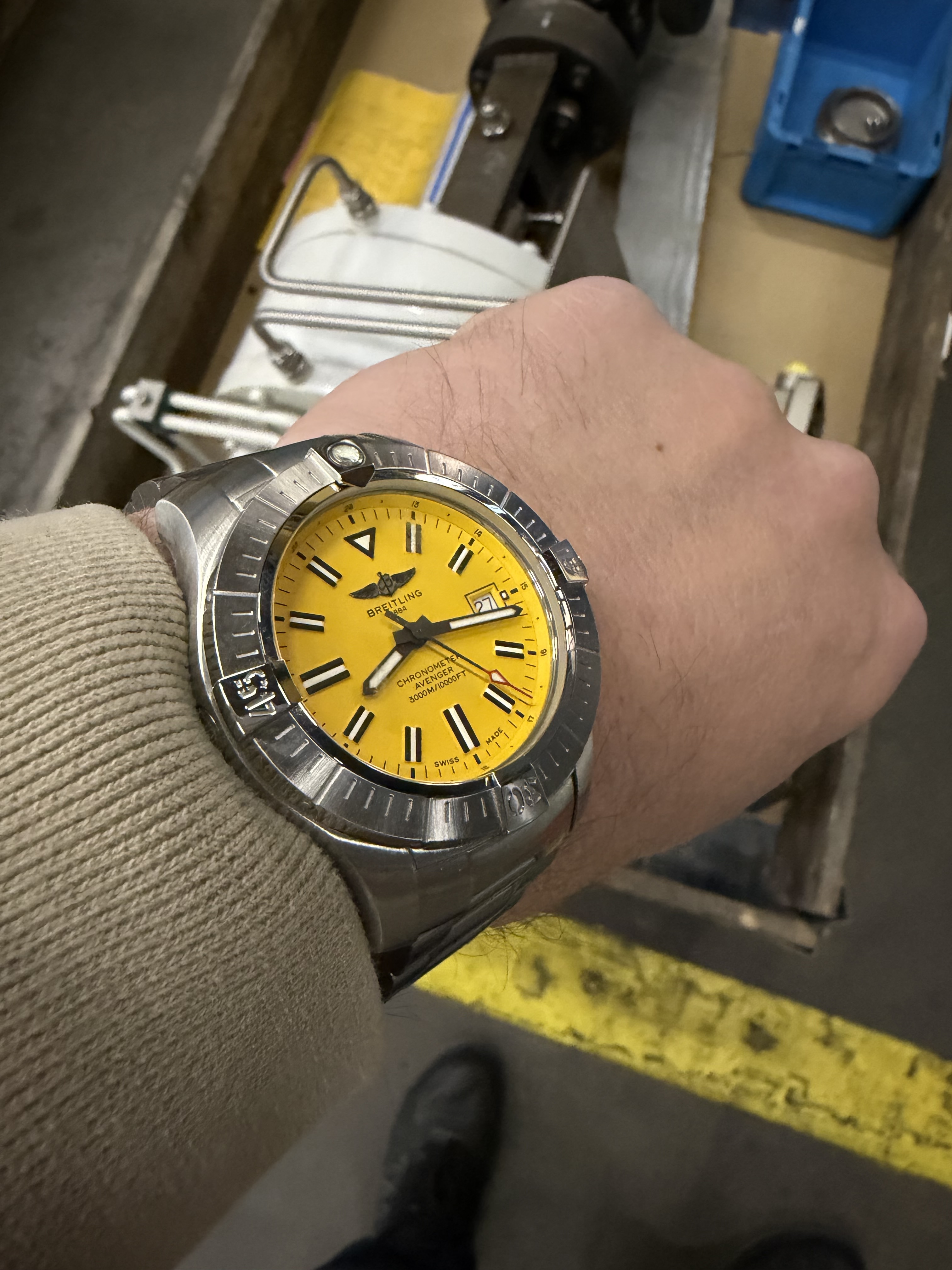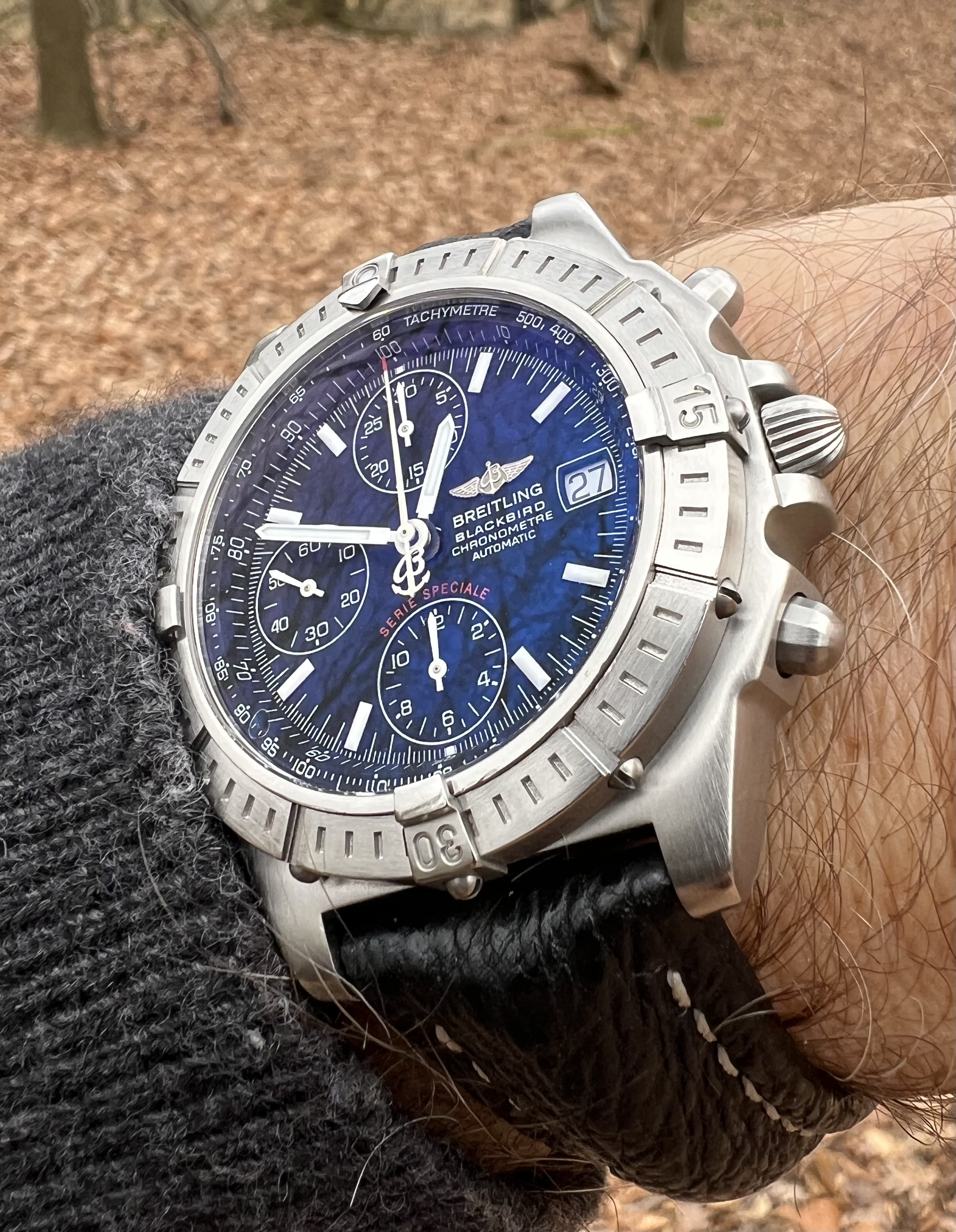 De eigenaren van de Breitling Chrono-Matic 2111 gevraagd hoe het zit. De man heeft hem ongeveer 15 jaar geleden mogen kopen voor duizend euro. Hij weet wat hij nu waard is. Gaat regelmatig om de pols en heeft ook af en toe onderhoud gehad. Dus ik mag hem niet meenemen. Helaas. Mijn vriendjes vonden hem al aardig.