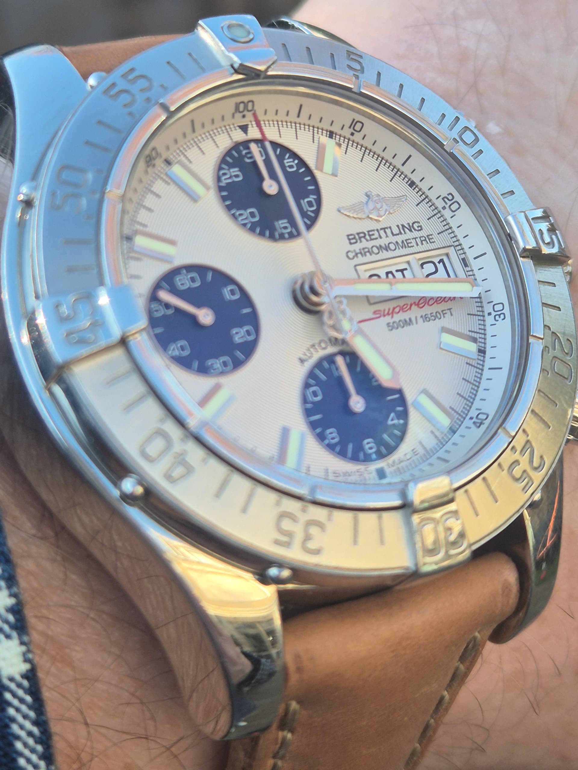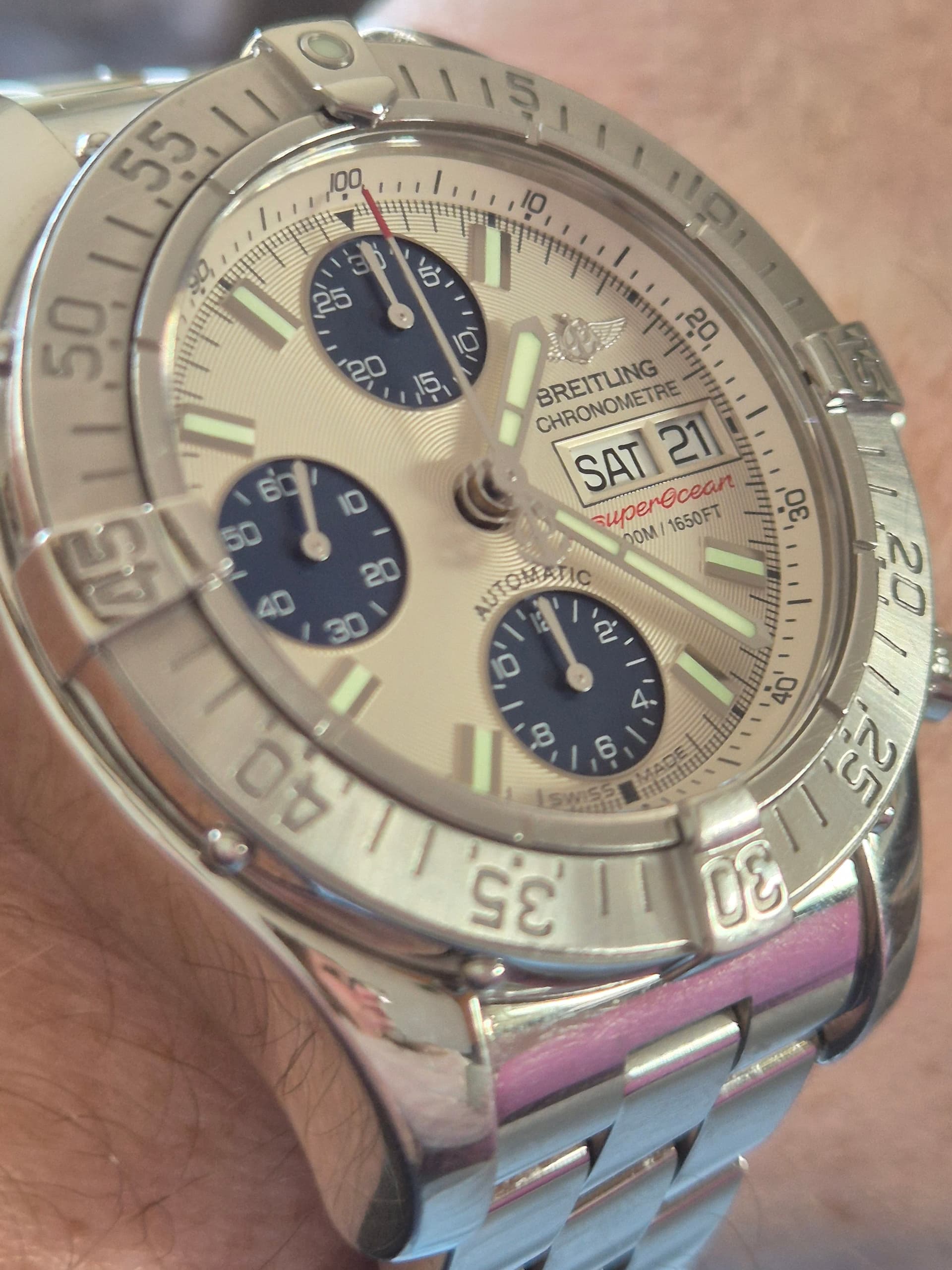 Nadat ik een tijd terug mijn zwarte Superocean a17366 heb verkocht is mijn oog nu op een blauwe variant gevallen. Zie foto hieronder.