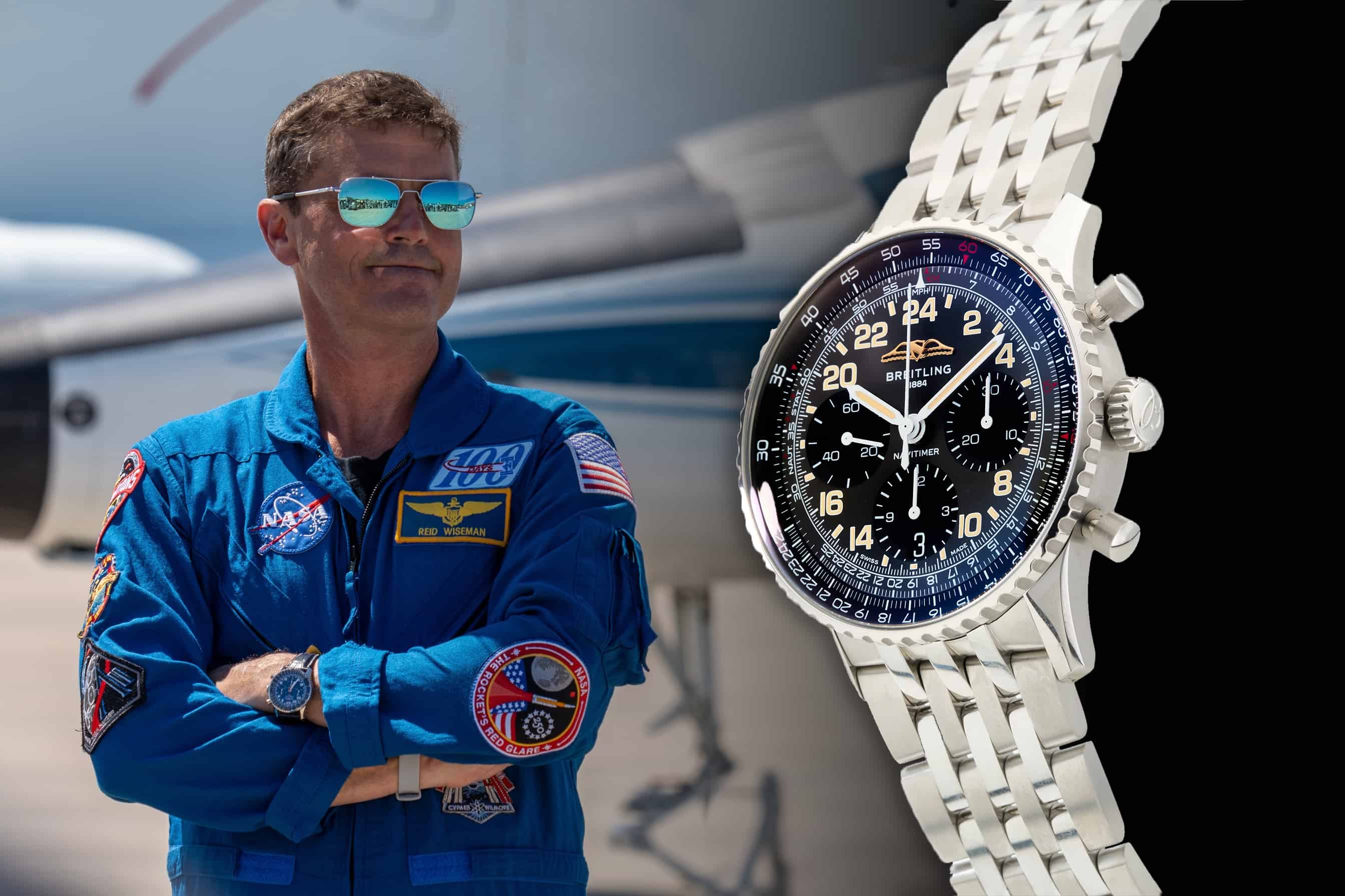 The Cosmonaute does not seem to be a regular-production model, and perhaps is a special edition made by Breitling specifically for the crew as an extra wink to the Carpenter past. The reason I say this is because it has a dark outer ring, and dark subdials whereas the current production model has contrasting white subdials and a white outer ring. The closest watch I could find to this Cosmonaute is a Japan limited edition (pictured above) with a grey dial, while images I’ve seen on Wiseman’s wrist make it look more blue.