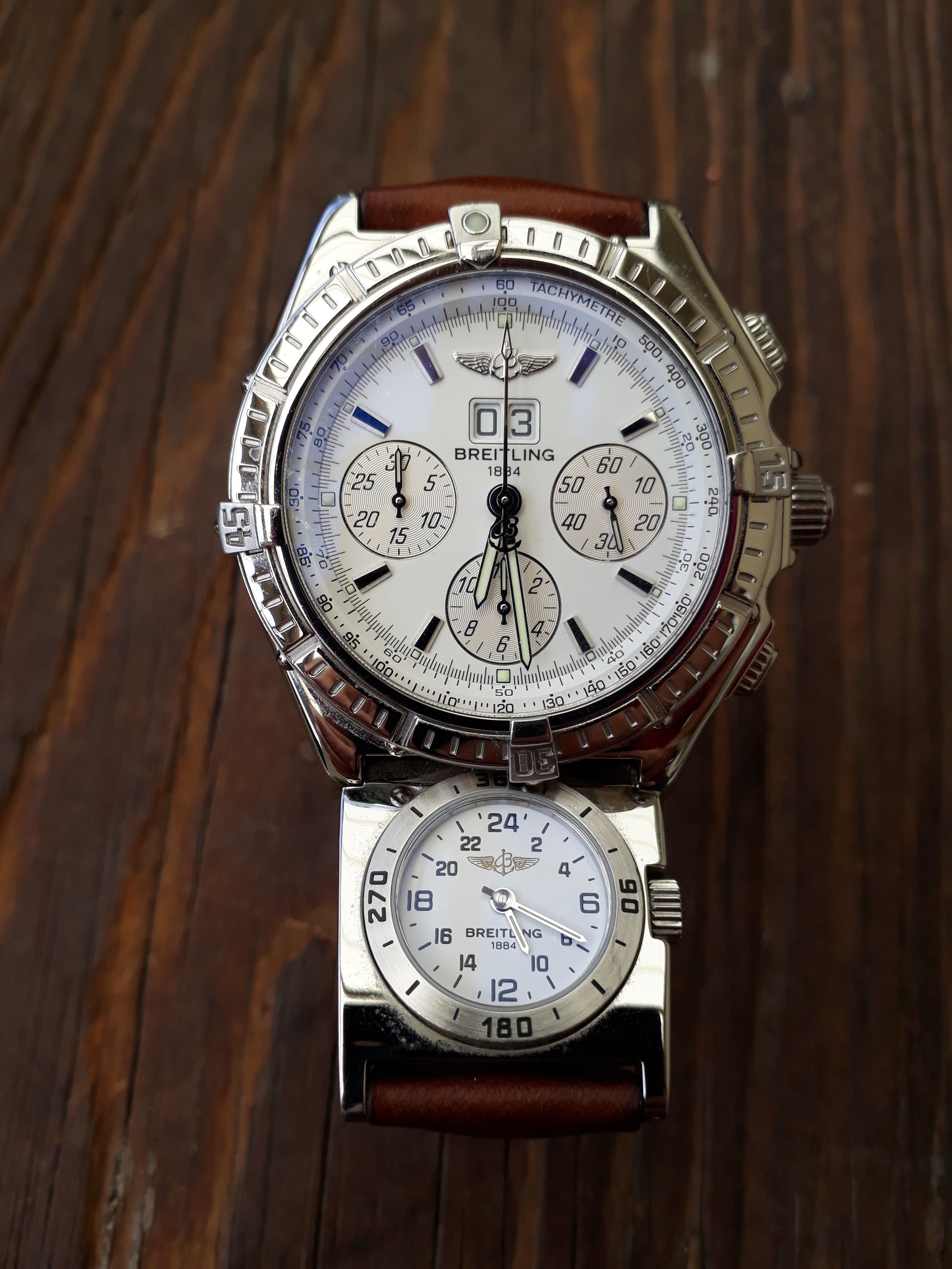 Beide inmiddels verkocht en nu opzoek naar een leuke vintage, zoals deze Chronomat ( internet foto ) met rode dial en het liefst met bijpassende utc.