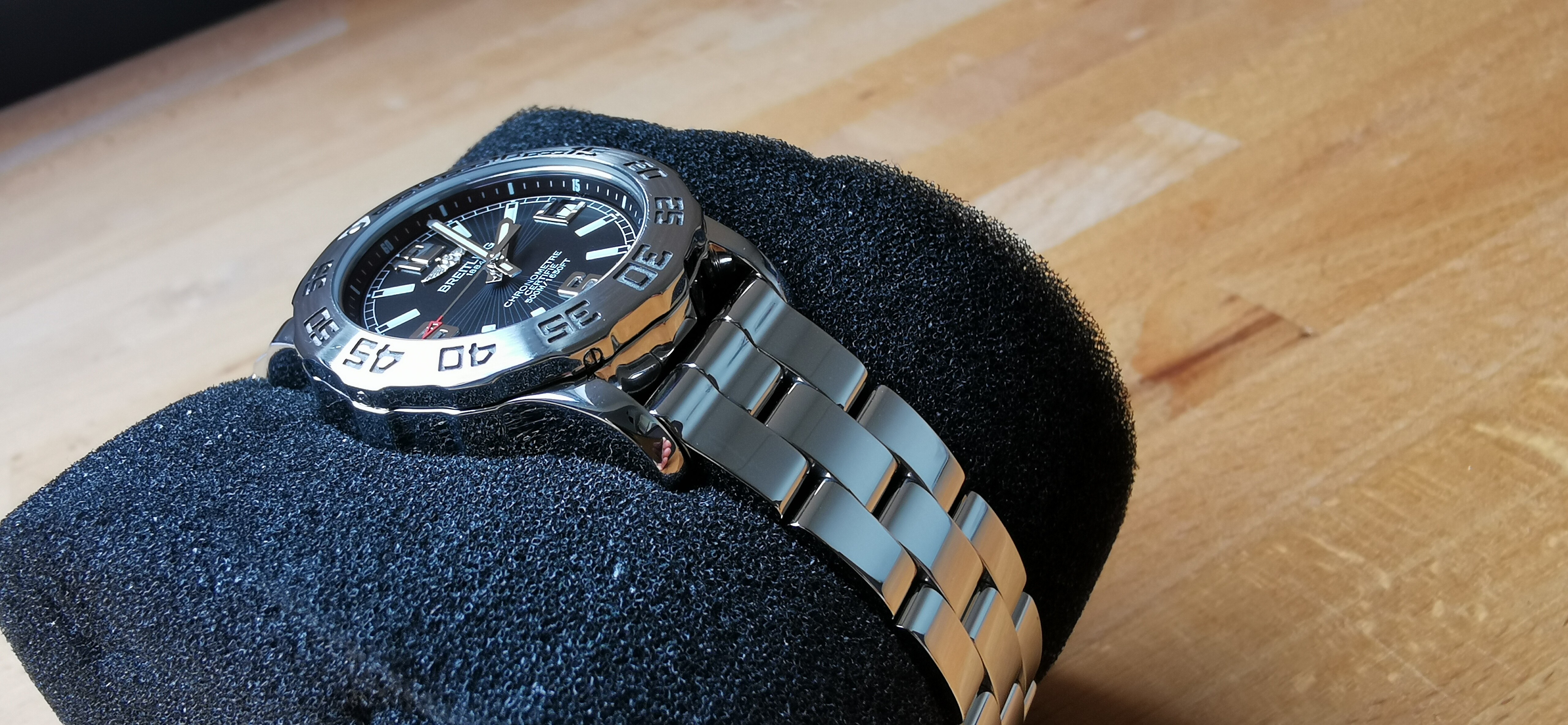 Het betrof een Breitling Colt Quartz waarbij hij een standaard onderhoudsbeurt heeft gehad inclusief batterij, uurwerk gereinigd en pakkingen vervangen en waterdicht afgeperst, ook is het horloge netjes (licht) gepolijst