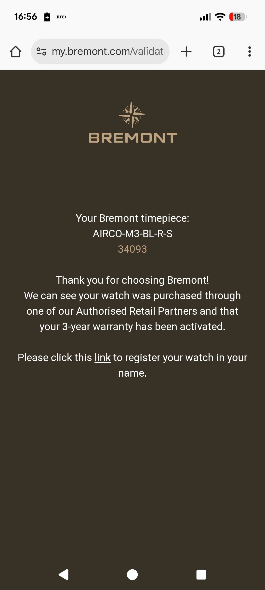 Soort uurwerk en kaliber: Bremont BE-92AE (ETA 2892) chronometer