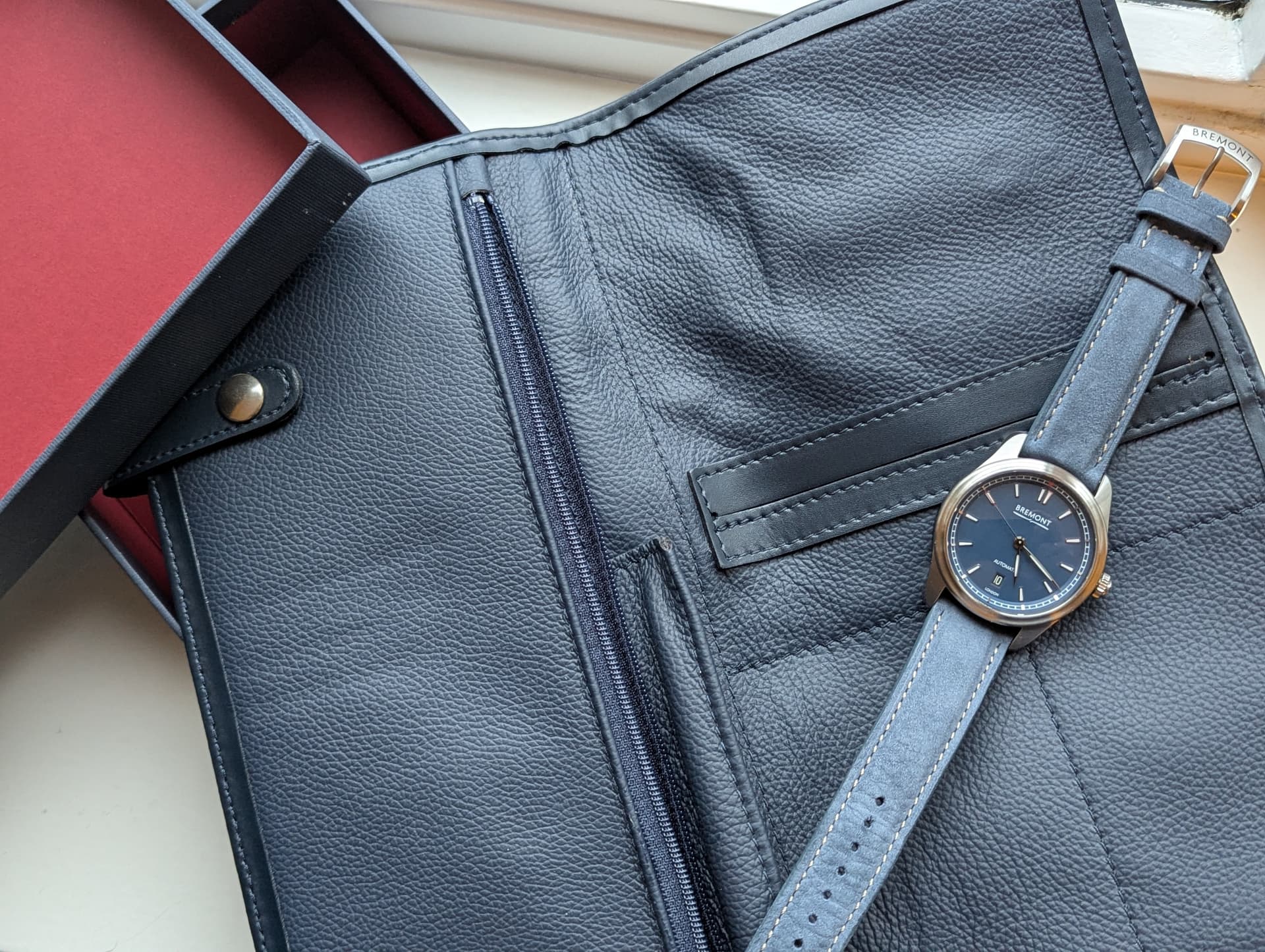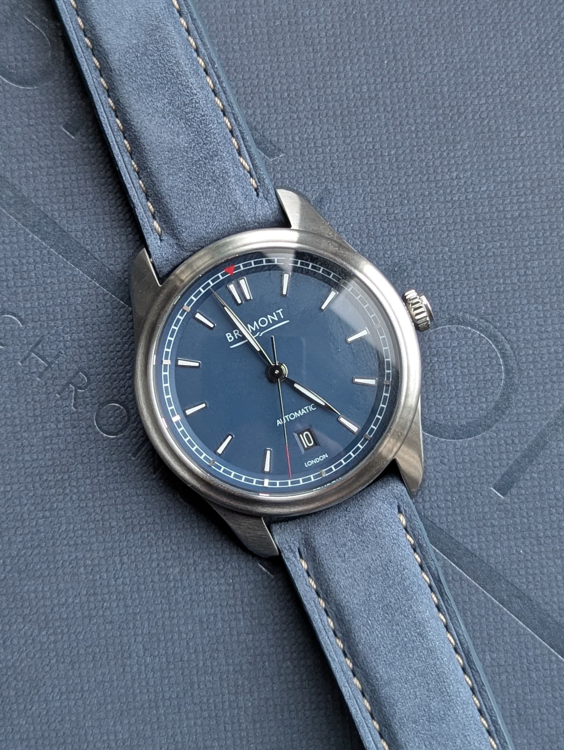 Tof vliegershorloge met chronometeruurwerk, eigen smoel, gehard stalen Trip-Tick kast met zwarte DLC barrel, 12,5mm dik, 20mm lugs. Ik wil niks afdoen aan de kwaliteit van andere horloges, maar als deze Bremont een mond had, at hij IWC Mk’s voor het ontbijt. En dat voor de prijs van een tweedehands fiets.