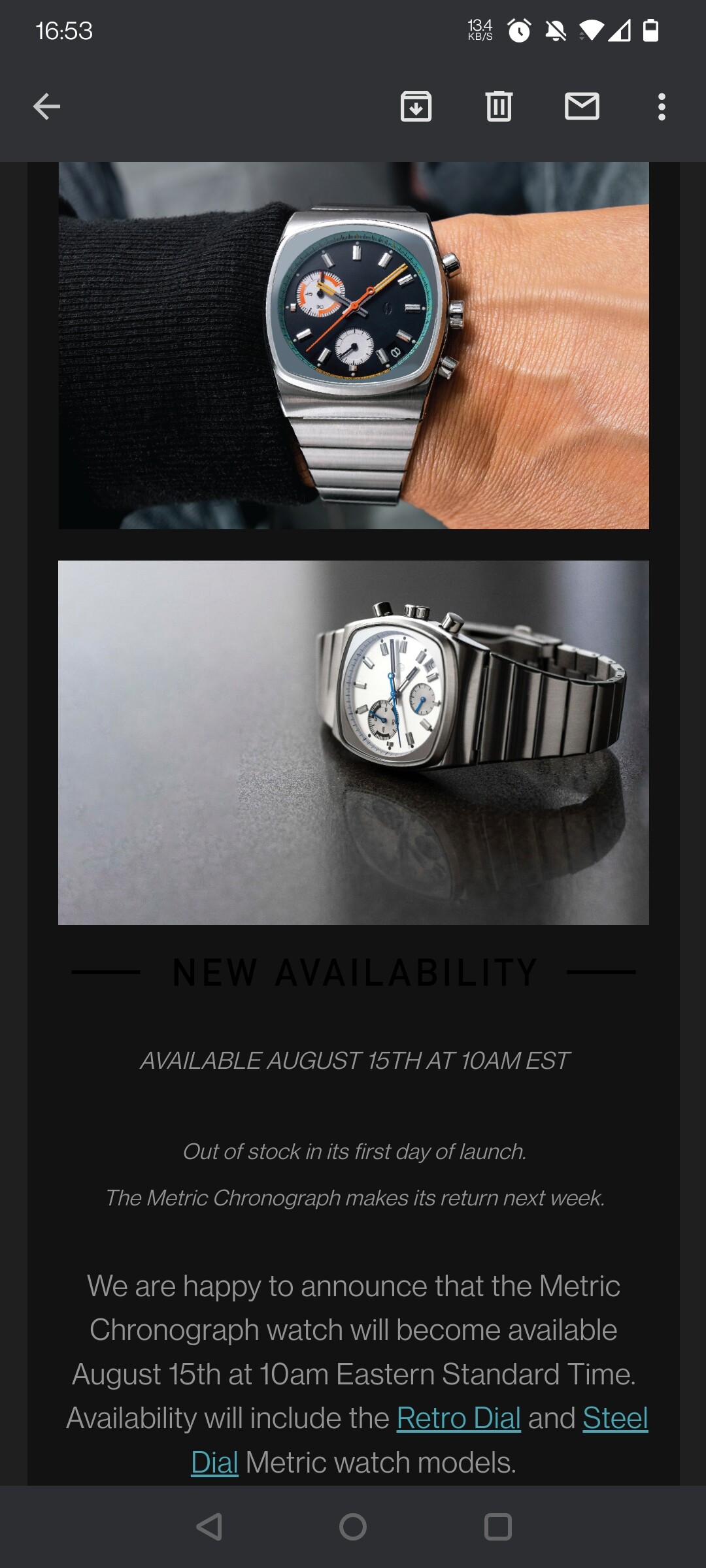 Ik weet eerlijk gezegd niet of het is toegestaan, maar ik zag vandaag op Chrono24 iemand uit Nederland de Metric aanbieden voor 550euro. Dat lijkt me een faire prijs.