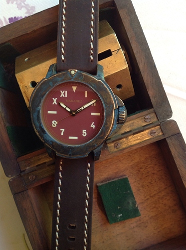 - Het horloge dat mee geweest is op vakantie heeft een totaal ander uiterlijk gekregen dan de klokjes die thuis zijn gebleven.