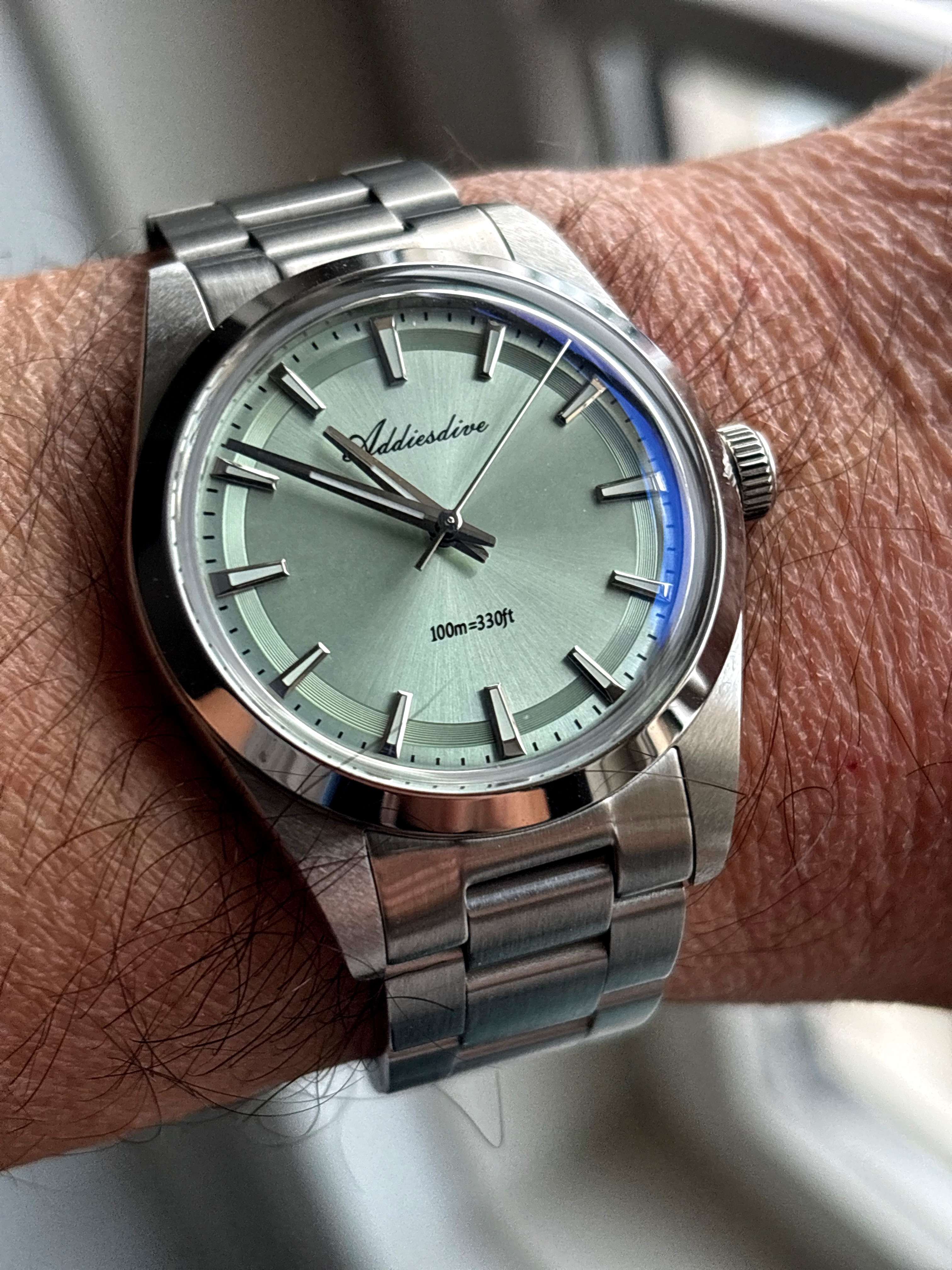 Addiesdive heeft voor rond de 50 tientjes een prima daily met solid stalen band (niet gevouwen) solid endlinks en een mecca quartz Seiko uitwerk die met 4 beats per seconde je wat doet vergeten dat het een quartz is. Design wise is het een Conquest dial in een Oyster case.
