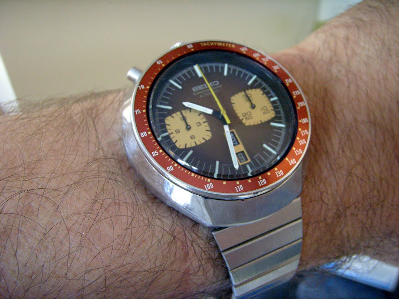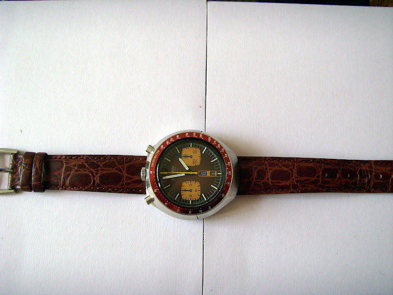 Deze staat ook nog op mijn lijstje en eigenlijk wil ik eerst nog de zwarte met blauwe subdials. Maar voor die tijd eerst maar eens mijn Citizen bull-head verpatsen, want die is toch eigenlijk te klein voor mij. De afmeting van deze Seiko is perfect. Jouw exemplaar ziet er nog perfect uit.