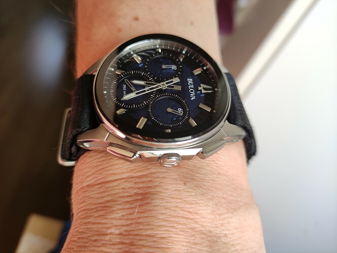 Inderdaad een leuk horloge. Helaas heeft de mijne een tikje gehad tegen een magazijnstelling waarbij er een kras op de bezel is gekomen.
