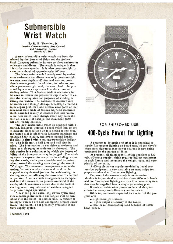 Die MIL-SHIPS-W-2181 is een heruitgave van een proefmodel van een duikhorloge volgens de specificaties van de amerikaanse marine in 1957, het idee dat ze daar hadden is dat als er een strook lakmoespapier op de wijzerplaat zit er snel gezien kan worden of het horloge lekt of niet.