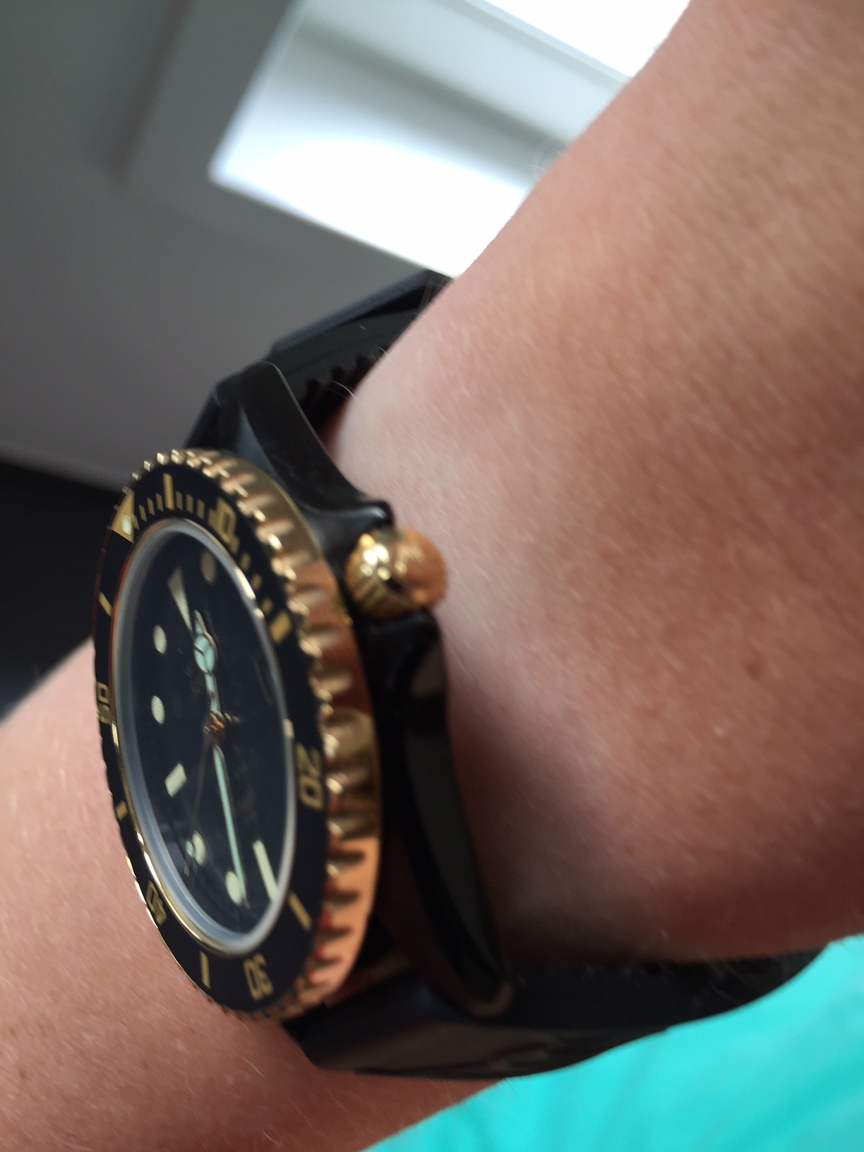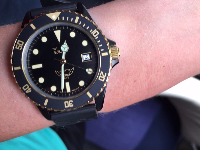 Dochter gisteren geslaagd. Pa ziet kans om iets te kopen van 1 van zijn favoriete merken! De Squale 1545 pvd zou als quartz in pvd/goud met 38mm nooit mijn keus zijn, maar voor een sportieve dochter lijkt het de perfecte retro-duiker! Zij is er blij mee en pa ook