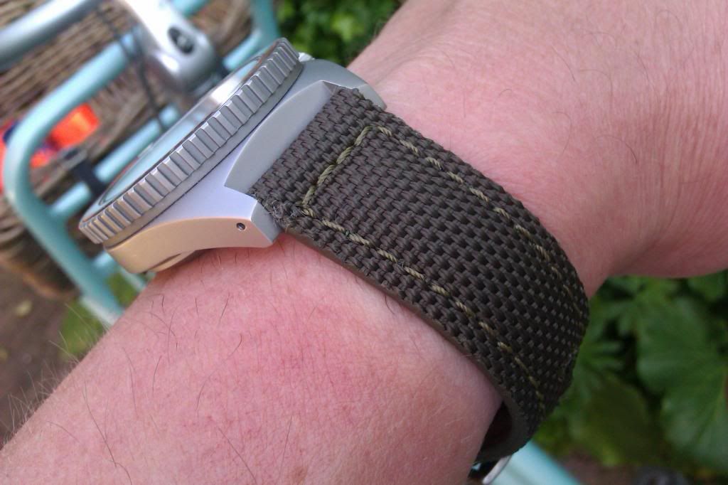 Hoewel ik NATO banden nog steeds waardeer vanwege het comfort and de vele mogelijke kleurencombinaties vind ik het toch minder staan op mijn forsere horloges. Het draagt dan wat te hoog en topzwaar.