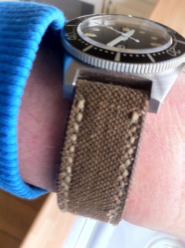 Ik weet dat de NATO’s ook te dragen zijn zodat er slechts één laag stof tussen pols en klok zit, en dat er een geweldig aanbod ‘2 piece nato’s/zulus’ is, maar dan heb ik toch echt liever een mooie canvas band.