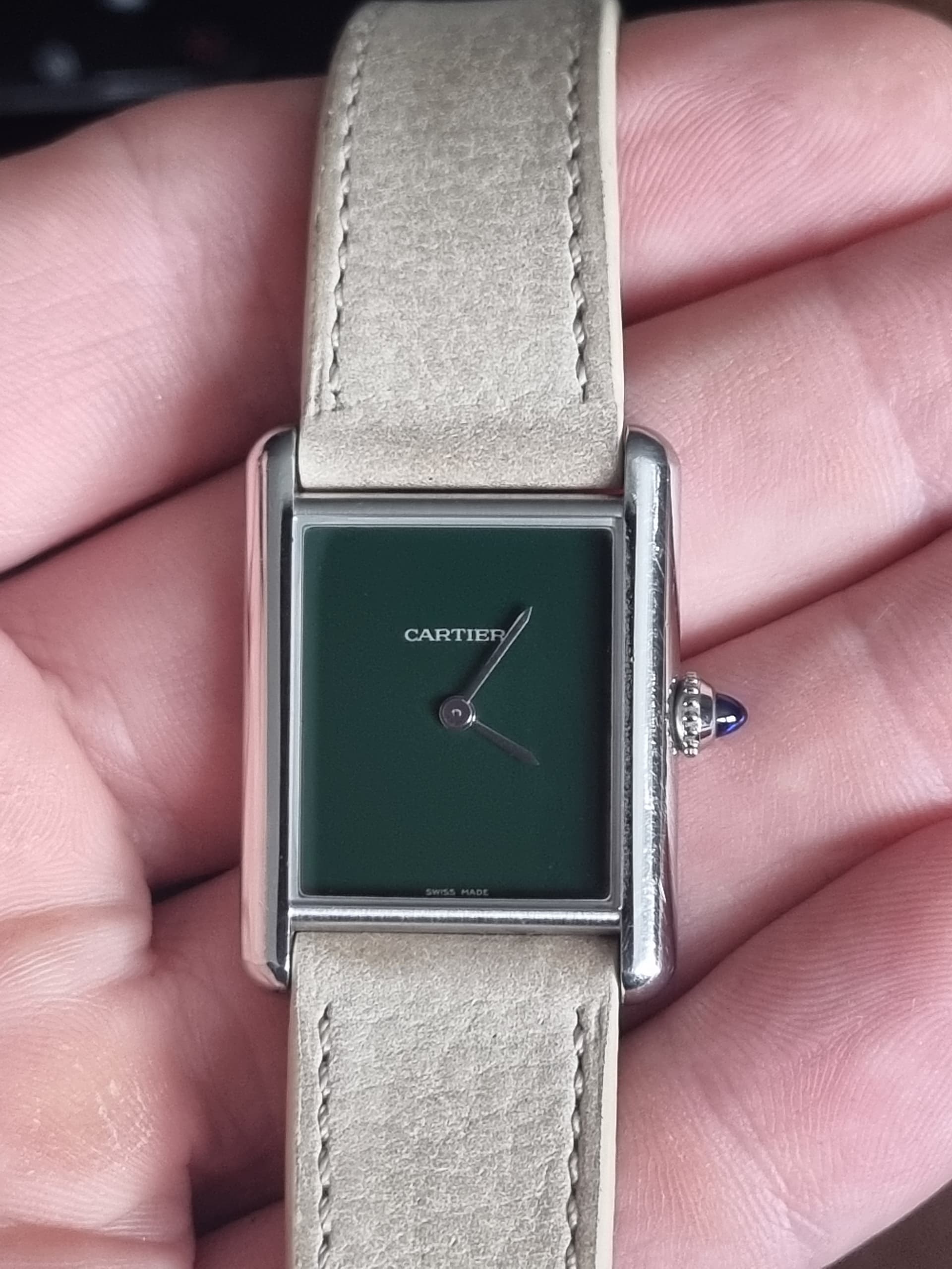 Deze is perfect inderdaad! Volgens mij heeft de Tank Louis als enige nog guilloche in de wijzerplaat. De grotere nieuwe large heeft een automatisch uurwerk. Ik persoonlijk zou altijd voor deze medium met handwinder gaan. Zo is de tank mijns inziens bedoeld. ![]()